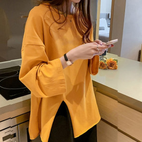 T-shirt Women fashion korean style 2022 Solid color long sleeve Split tshirts O-neck 2022 summer/autumn women's clothing WYP6801