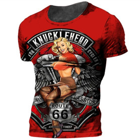 Vintage Motorcycle T Shirt For Men 3D Racing Girl Short Sleeve Tops Street Men's Biker T-shirt Oversized Tee Shirt Man Clothing