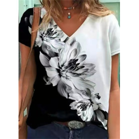 Summer Casual Tee Short Sleeve Women T-Shirts Flower Print Street Tops Female V-Neck Loose T-Shirt 5XL Size Top Pullover