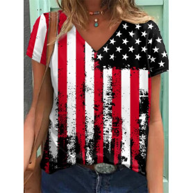 Trendy USA Flag Graphic T-shirt Women Summer Short Sleeve Clothes V-Neck Tops Lady Basic Tee Blouse Stripe Star Print T Shirt