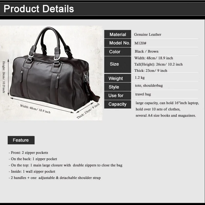 Fashion Men Genuine leather Travel Bags Men Luggage Bag real Leather Weekend bag Duffle Bag Large Overnight Tote Handbag Big