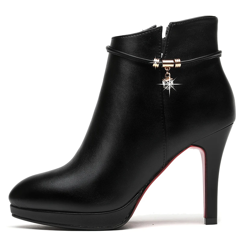 New Sexy Black High Heels Genuine Leather Shoes Women Boots Female Pointed Toe Zip Boot For Woman Ankle Boot Winter