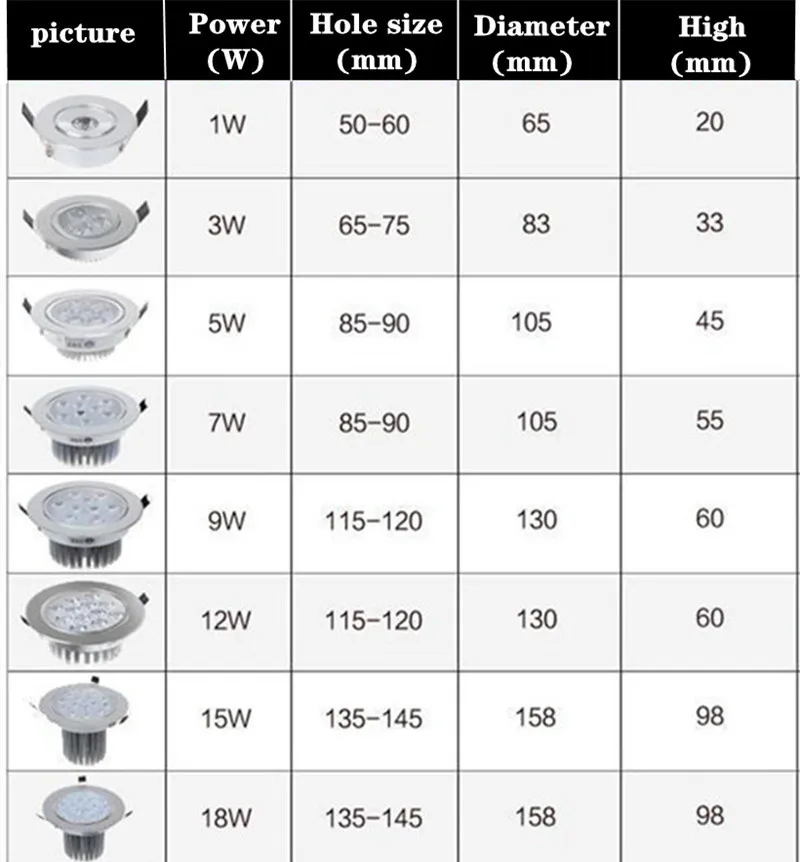 power:1W/3W/5W/7W/9W/12W/15W/18W