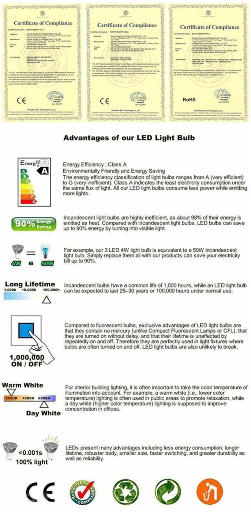 Luminous Intensity: 3w=180lm 6W=420LM 10W=550LM 14W=720LM