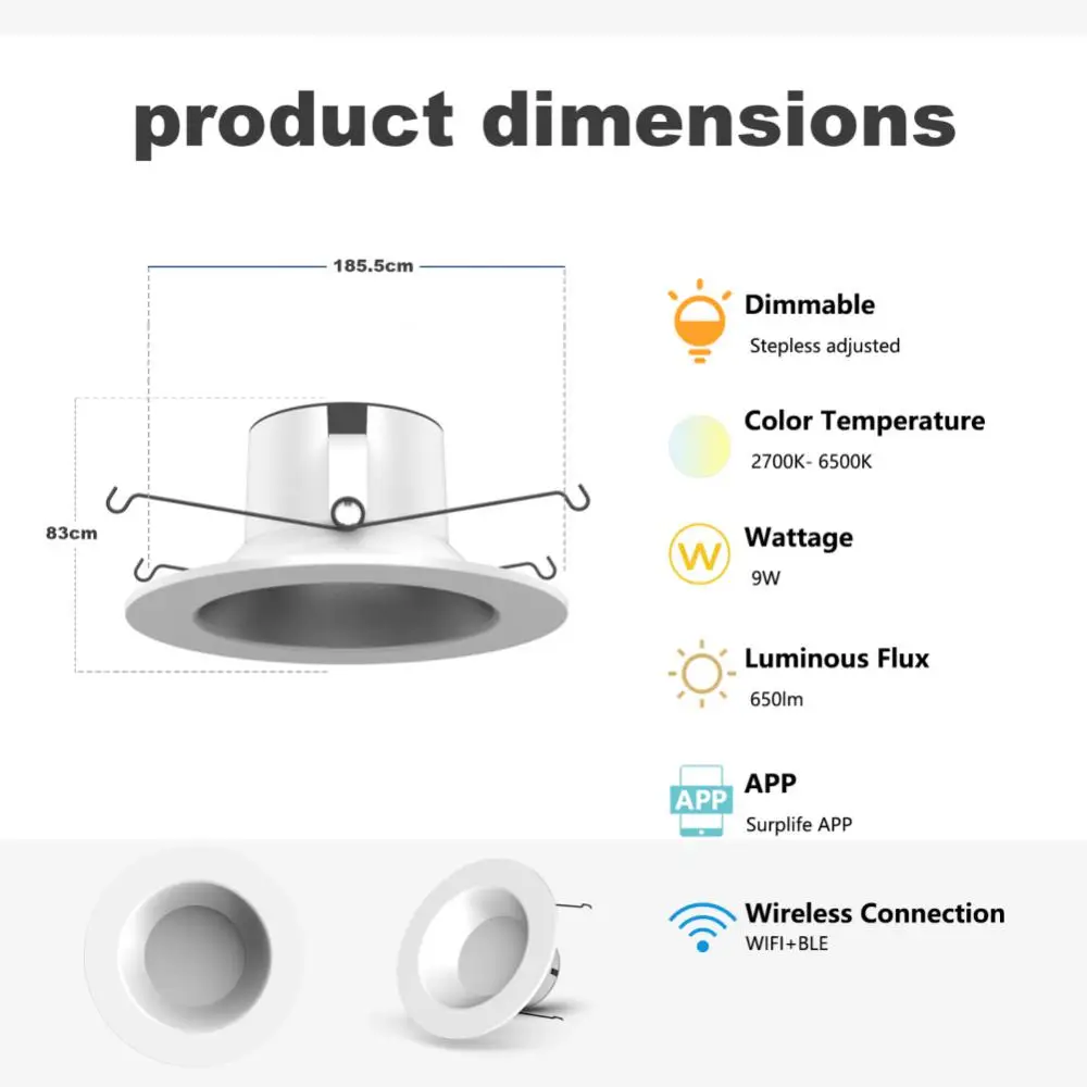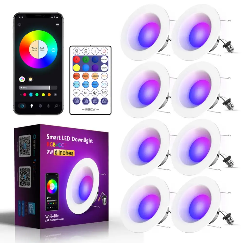Wireless Wifi Smart LED Downlight RGB Dimmable Lamp Smart Home Spotlight Light 9W Time Delay Switch Ceiling Lamp Round RGB Light