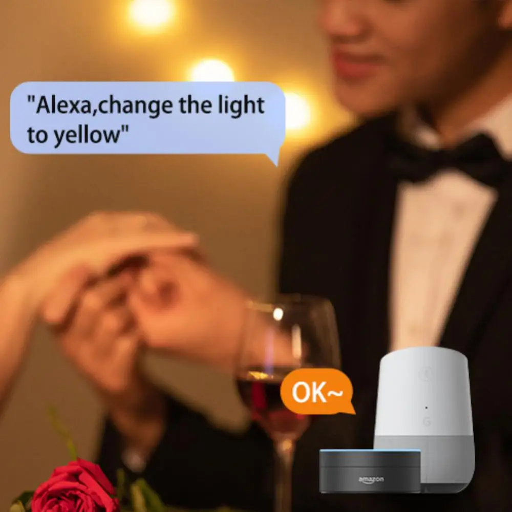 6. Can share group control, with the main controller can realize remote control and voice control: (compatible with Amazon Alexa, Google, Tmall Genie and other domestic small platforms)