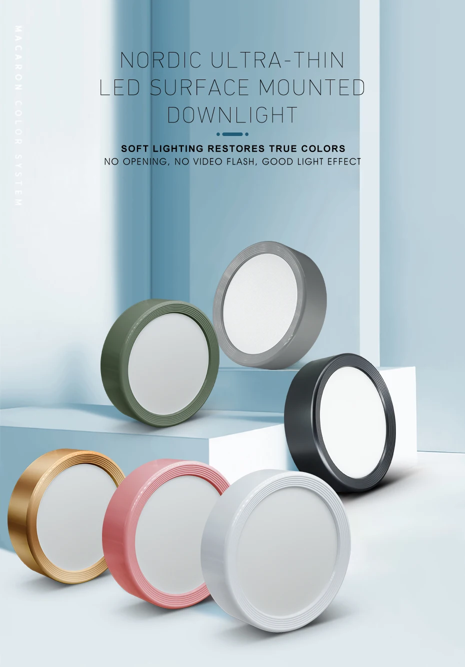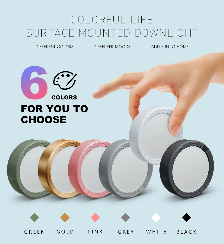 Colorful Surface Mounted Led Downlight 220V Led Spot Lights 5W 7W 10W 15W Round Downlights Down Lights Lighting Fixture for Home