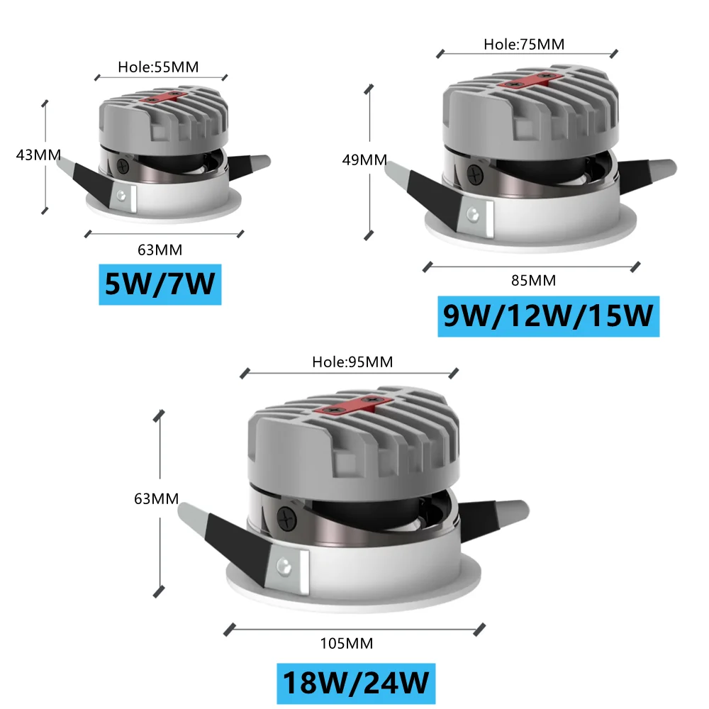 Wattage: 5W, 7W 9W 12W 15W 18W 24W