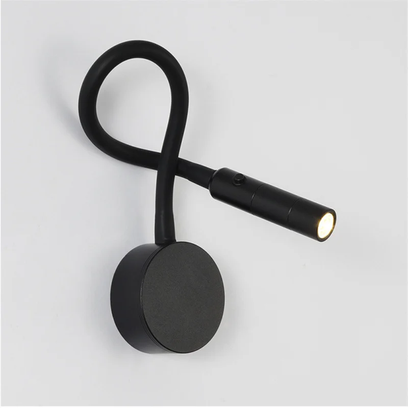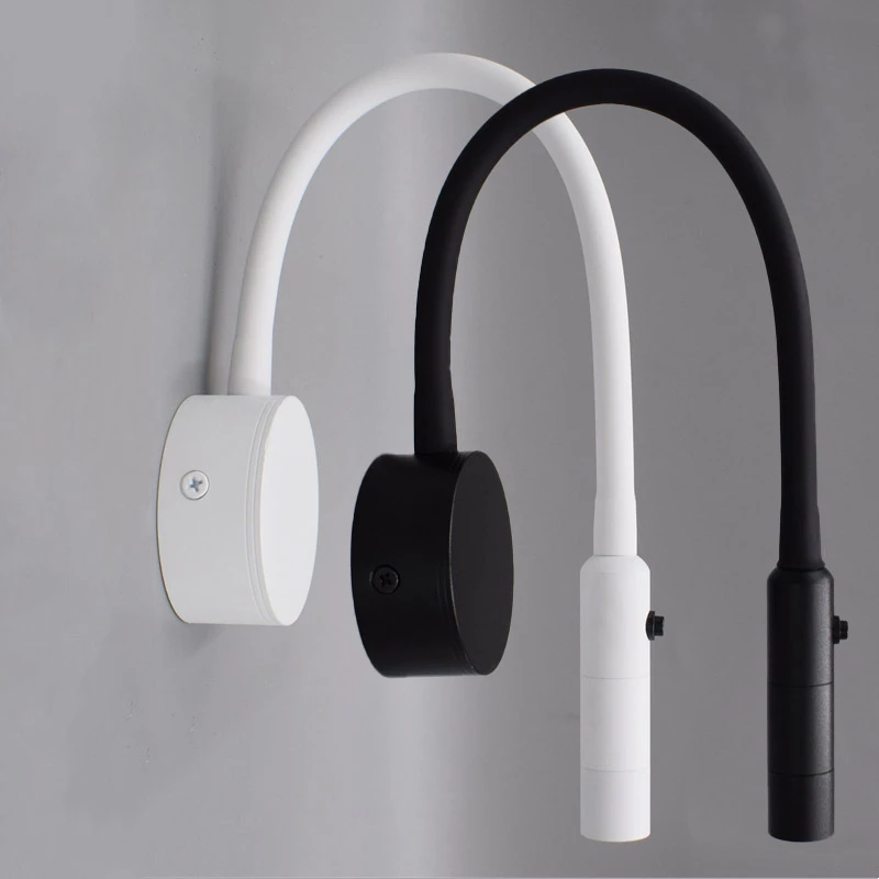 1W 3W Gooseneck Flexible LED Reading Wall Lights With Switch Adjustable Bedroom Bedside Sconces Wall Mounted Study Lamps Fixture