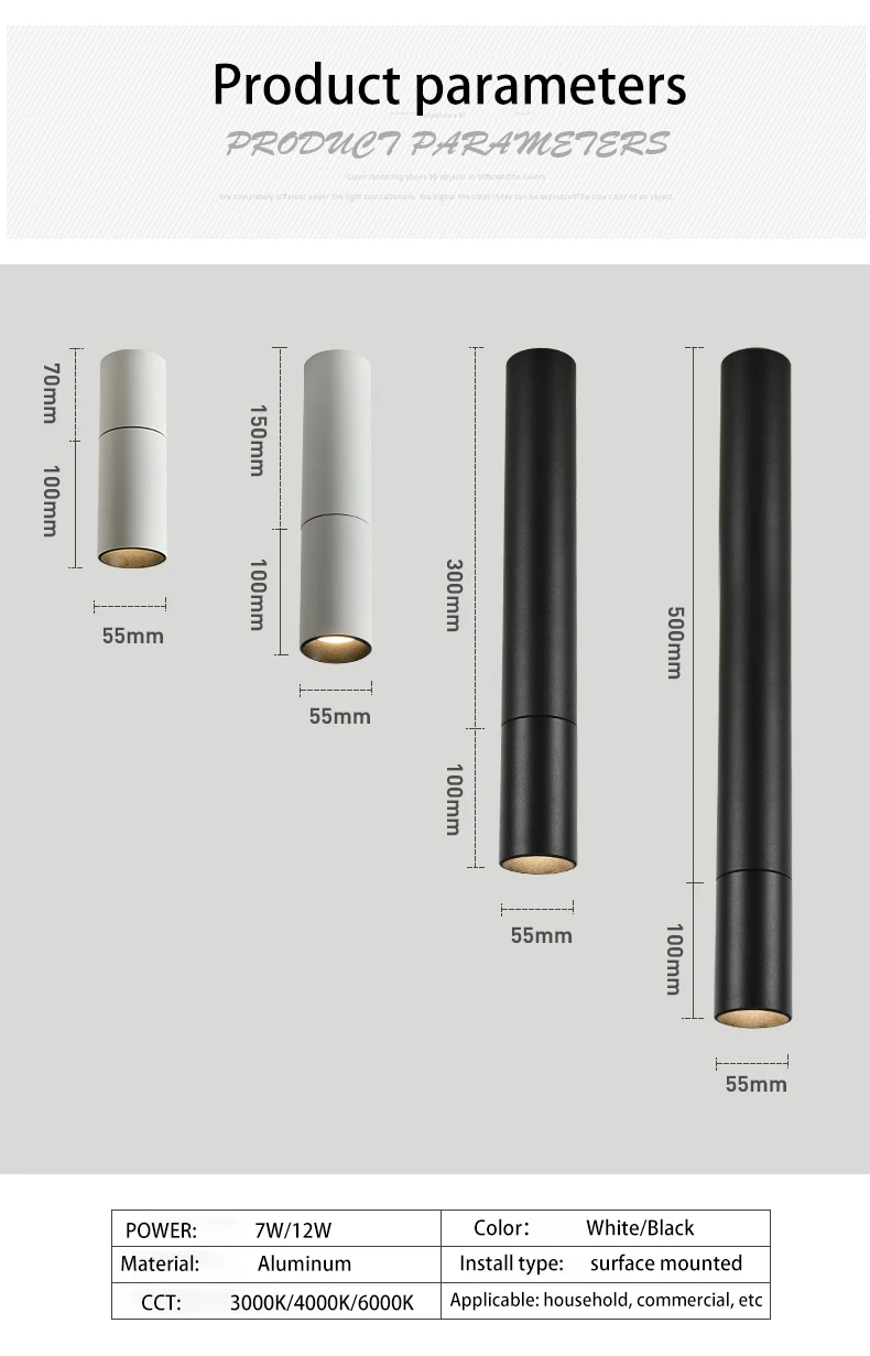 Saiyo LED Spotlights Surface Mounted Ceiling Lamp Adjustable Aluminum White Black COB 7W 12W For Home Kitchen Indoor Lighting