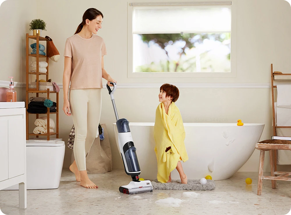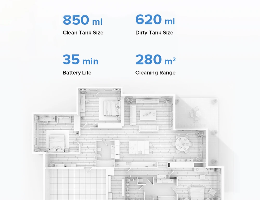 Deep clean your entire floor, with up to 280sqm (3000)sqft maximum cleaning range on a single charge3. Bathroom floor soaked after a shower? You can dry that up, too. Using a dedicated Floor Drying mode.