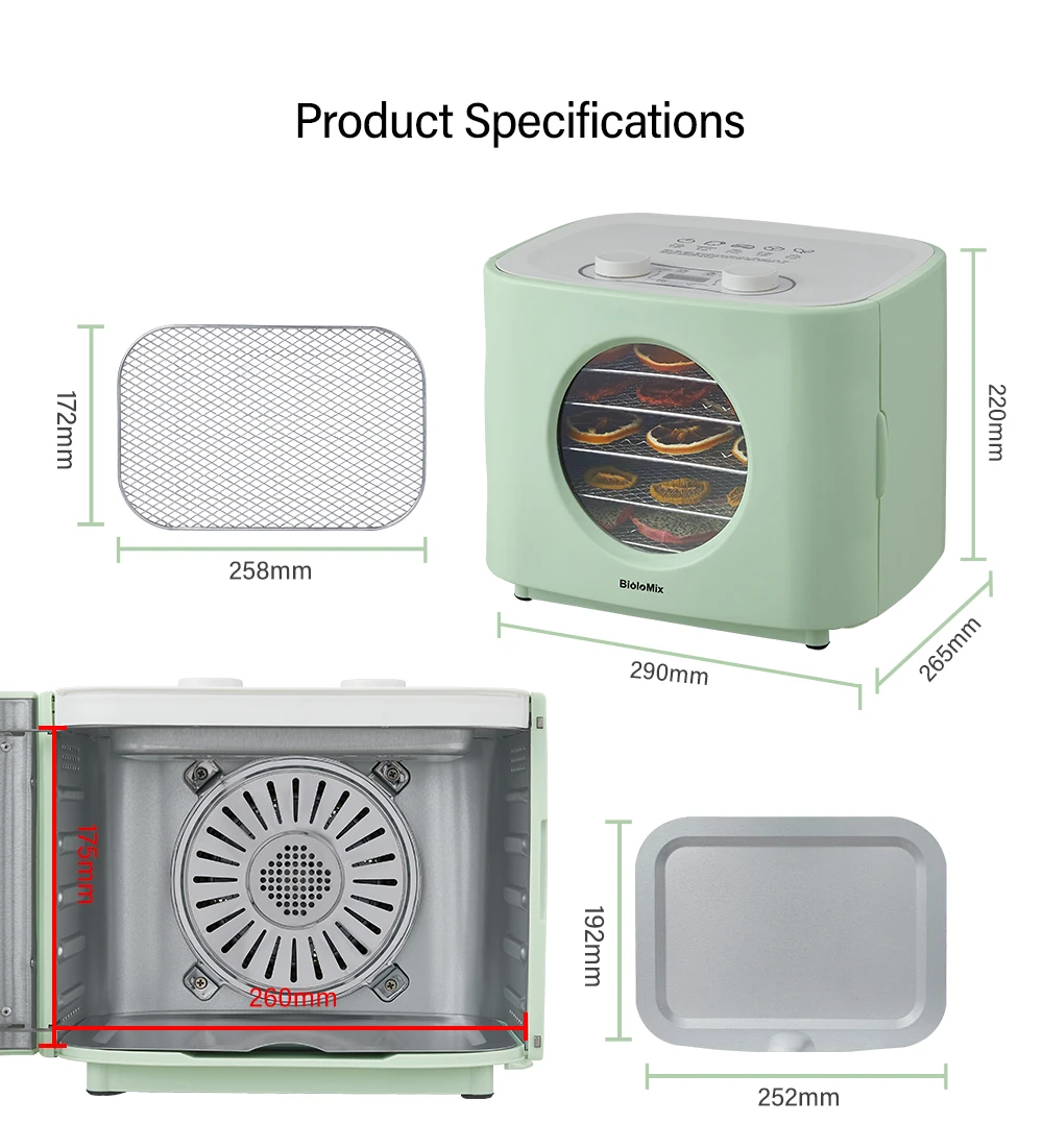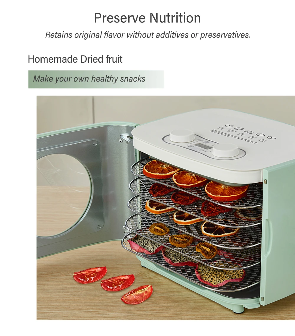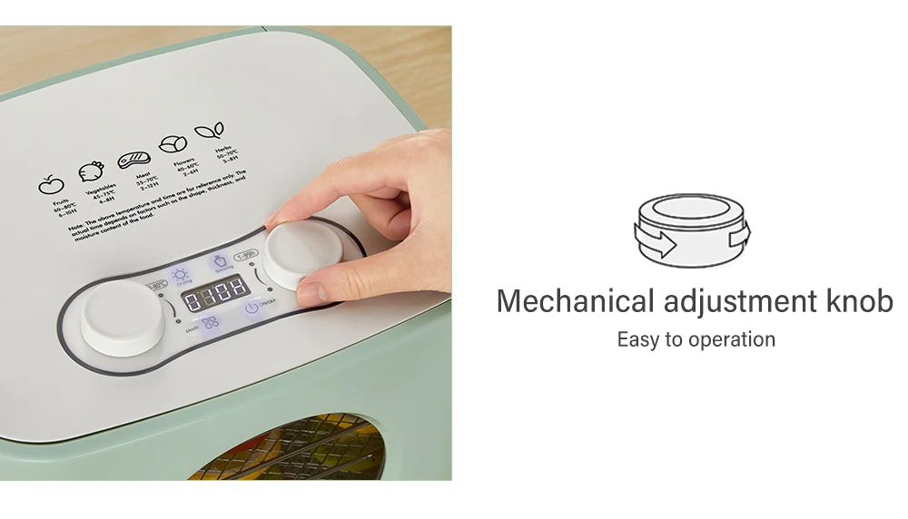 Transparent Window : Designed with a clear door that allows you to monitor the dehydration progress.