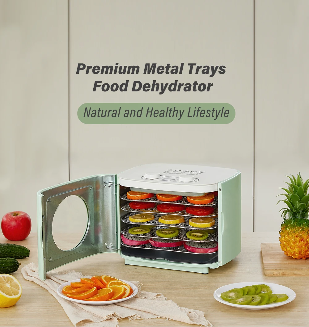 easily with the transparent door window5 Metal Trays : Simultaneously dry a variety of fruits, vegetables, herbs, or meats.