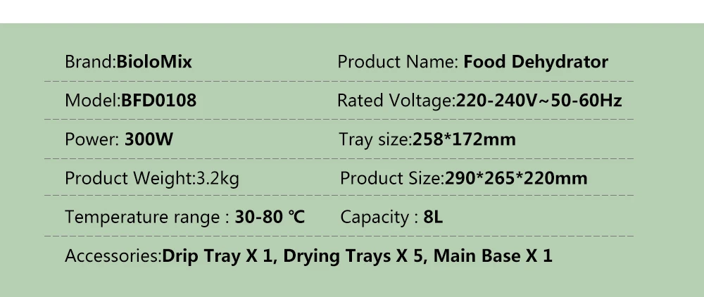 2 in 1 multifunction : Drying and Brewing 2 modes allow you to not only dry vairiety of food but also brew like healthy homemade yogurt even sweet wine without any food additives.