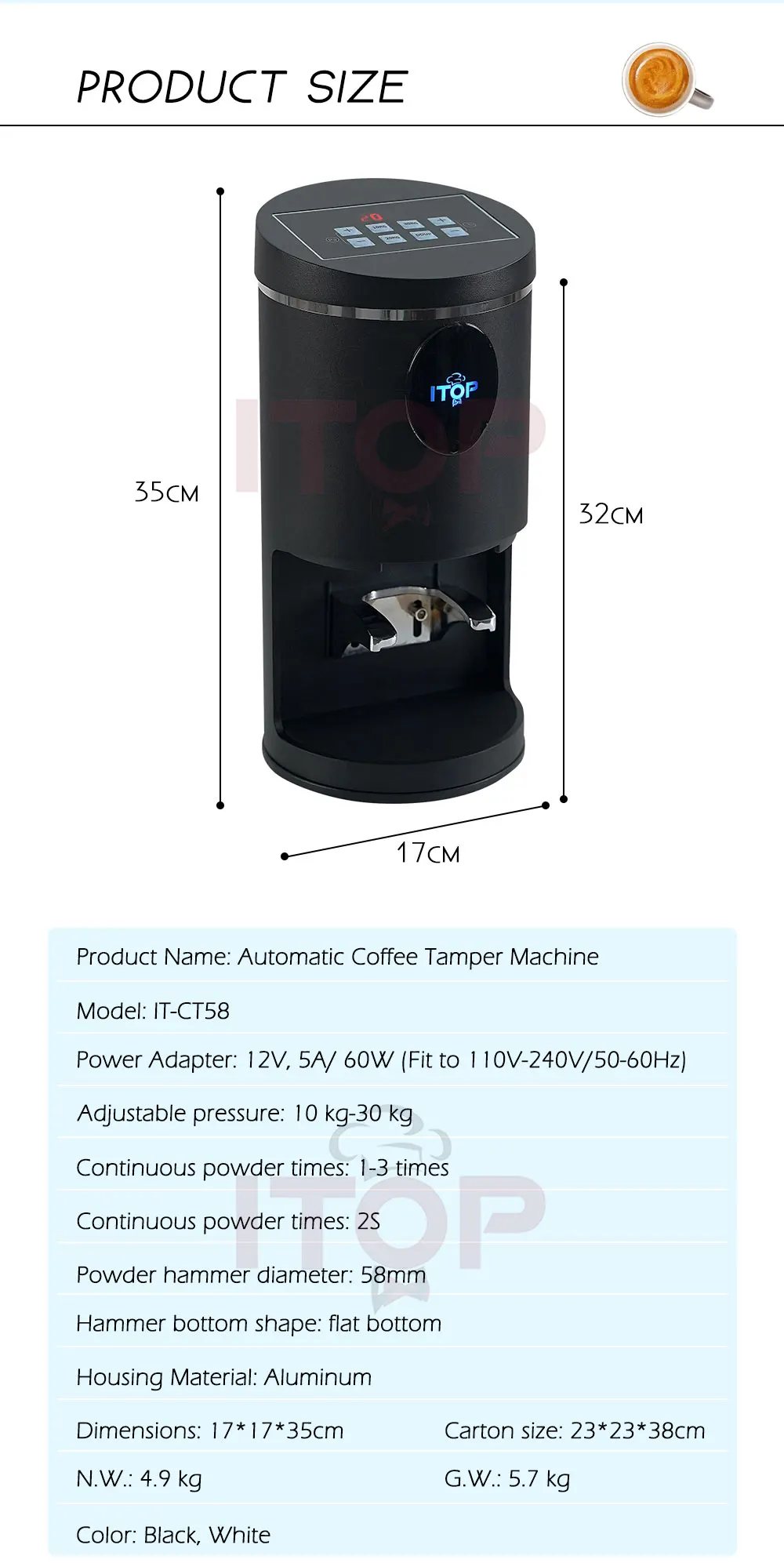 ITOP 58mm Coffee Tamper Machine Automatic Espress Cafe Tools Equipment Aluminum Housing Automatic Coffee Powder Press 110V~240V