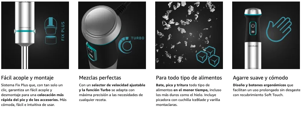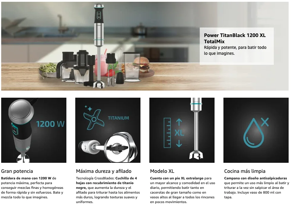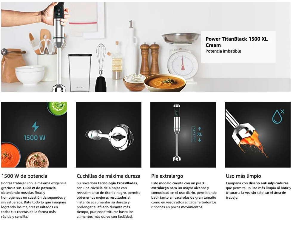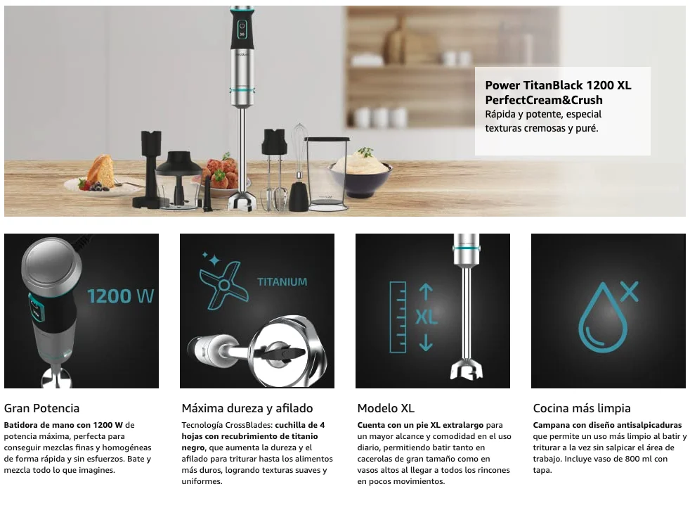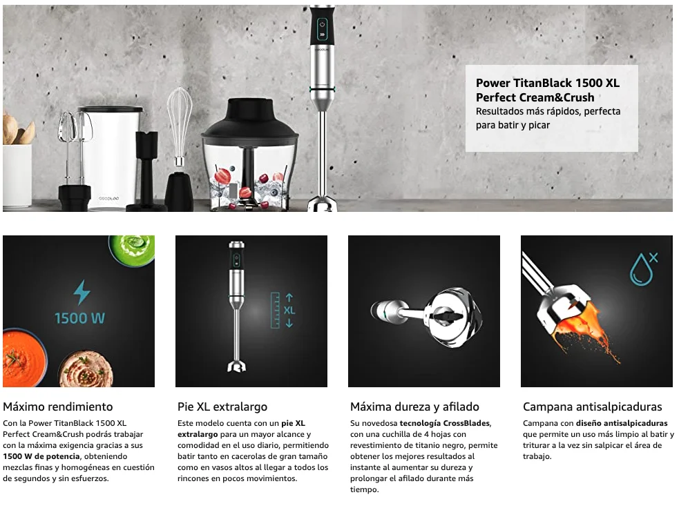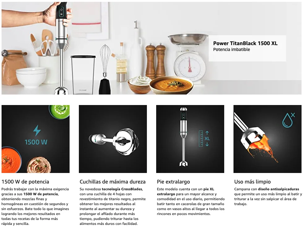 Cecotec hand mixer Power TitanBlack XL. 1200-1500W, CrossBlades technology with blades 4 sheets, foot XL, anti-splash