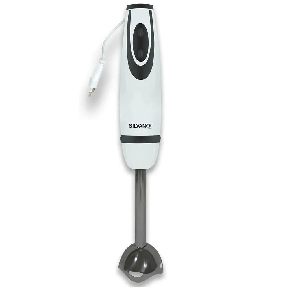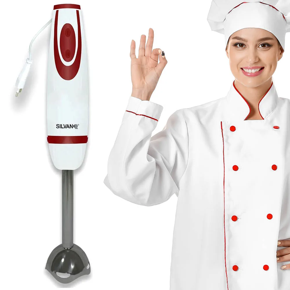 Detachable in two parts:ARM (with engine) on one side and splicing piece + tube with blades at the end on the other. Robot The tube is manufactured withStainless steel. RobotIt can be submerged in water and also washed in the dishwasher. Robot It is easily removed by pressing the hook tabs. Robot The arm is made of plastic material • Has a winding shape that does not show any salients. Robot Easily cleanable with a wet bayonet. Robot The grip zone with the hand isSlip resistant.Robot features2 blade turning speeds, Selectable by two buttons at the fingertips, so you can switch one and the other without stopping the engine between half. Robot It includes aSpecific beaker, with measuring marks. Robot Maximum power of 500 W.