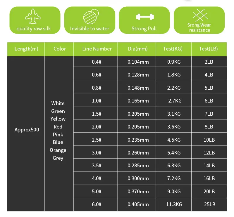 Line Number 1.2#: 0.165mm / 6LB / 2.4KG