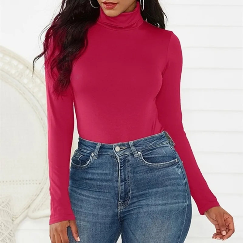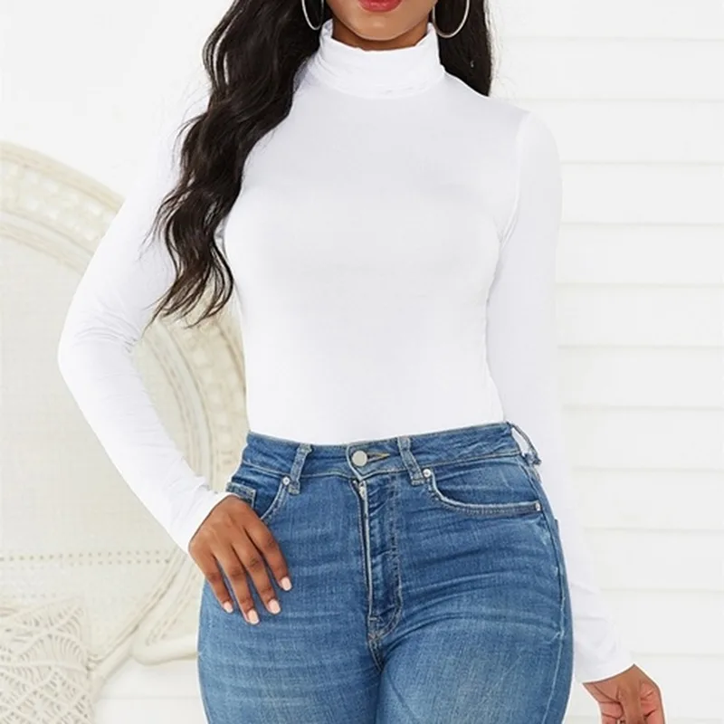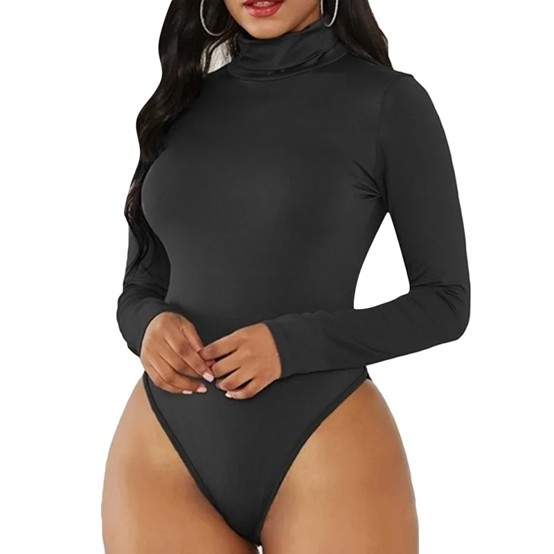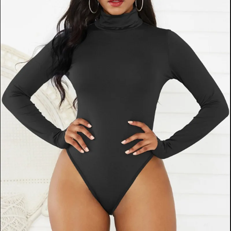 Sexy Solid Turtleneck Body Femme Long Sleeve Tops Autumn Winter Elegant Slim Bodycon Black White Bodysuit Womens
