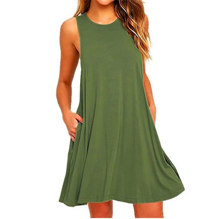 Women 2022 O-neck Sleeveless Solid Color A-line Mini Dress Fashion New Slim Retro Party Dress
