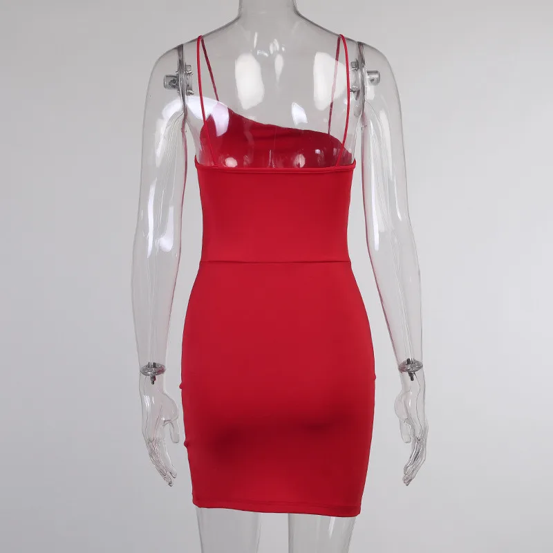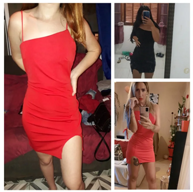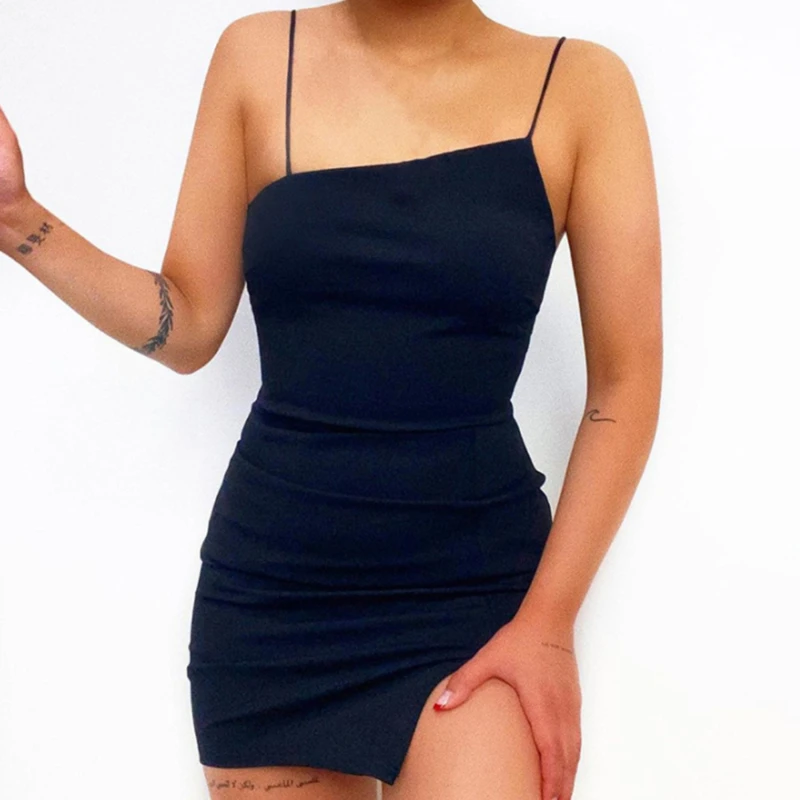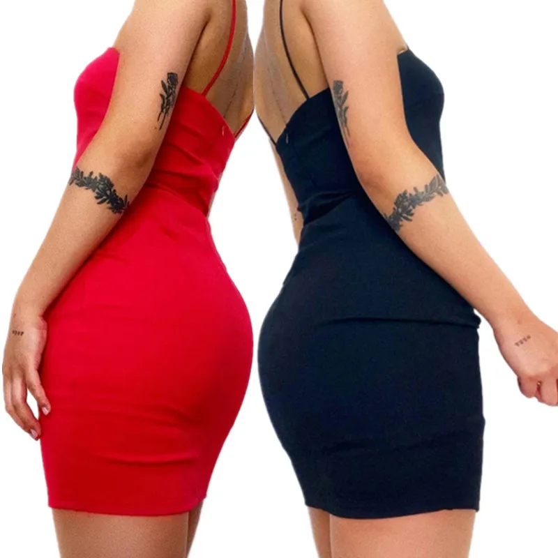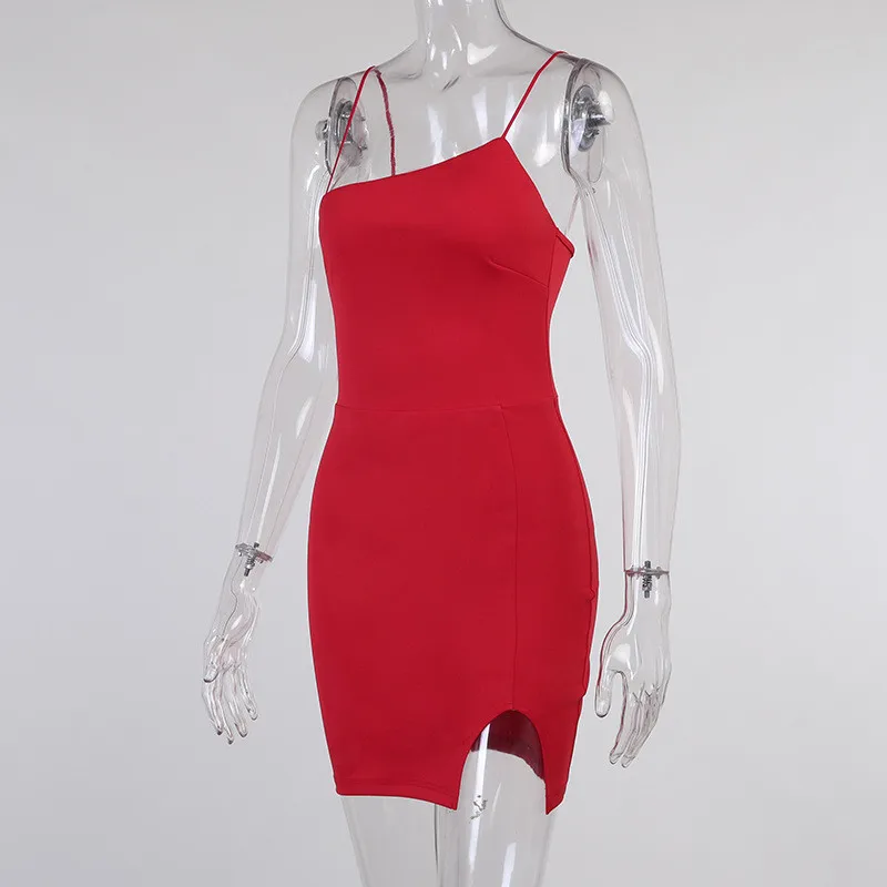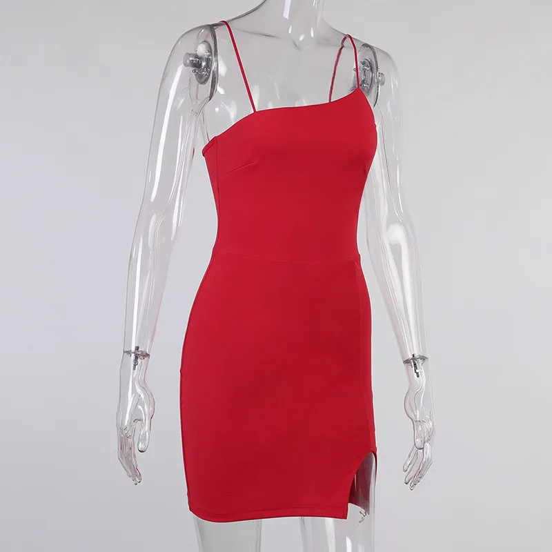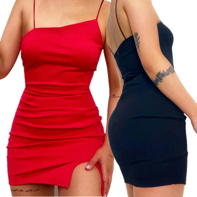 Women Slit Red Dresses Sexy Elegant Bodycon Spaghetti Strap Summer Backless Party Club Ladies Straps Mini Dress Vestidos