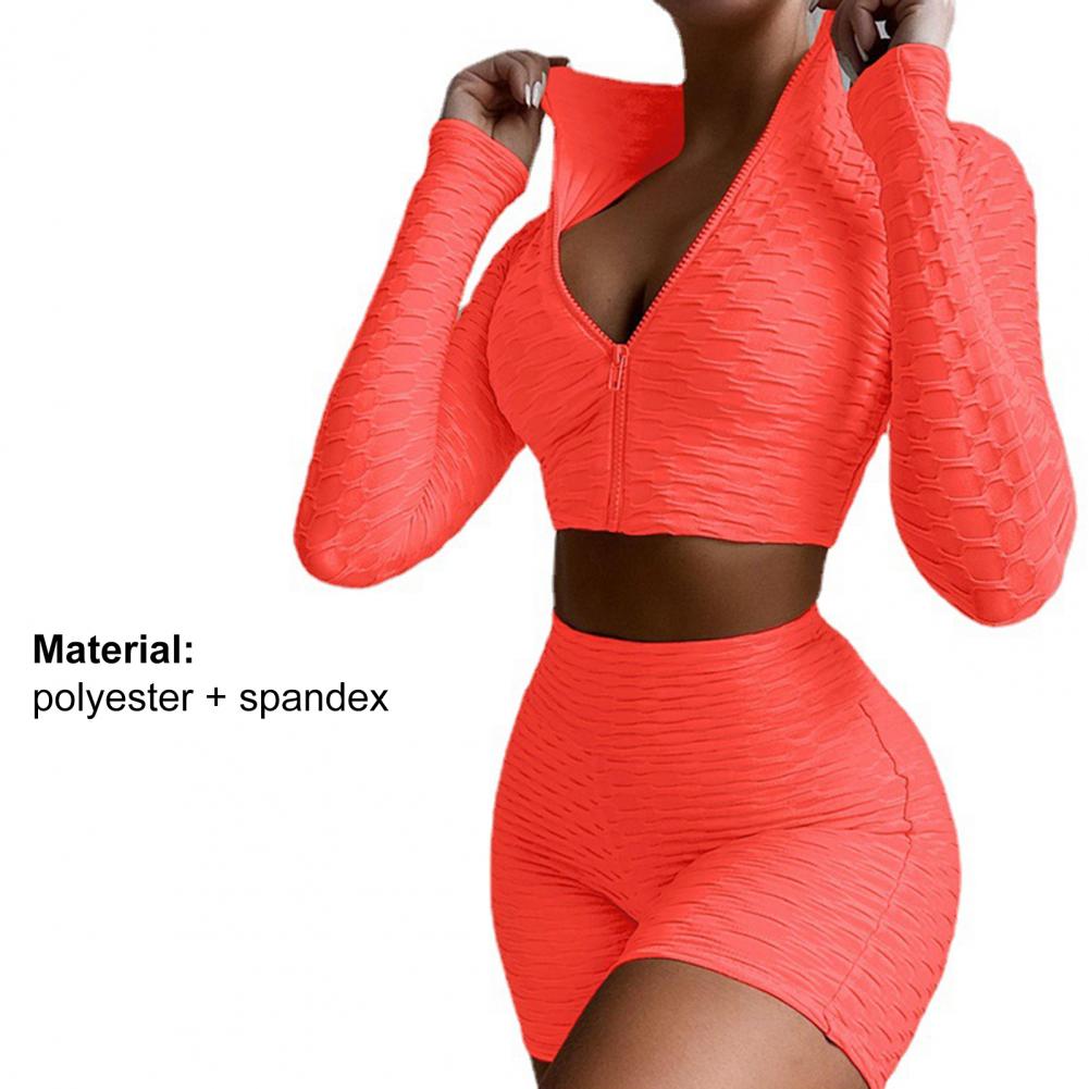 Long Sleeve Micro Elasticity Solid Color Long Sleeve Shorts Sport Suit for Jogging