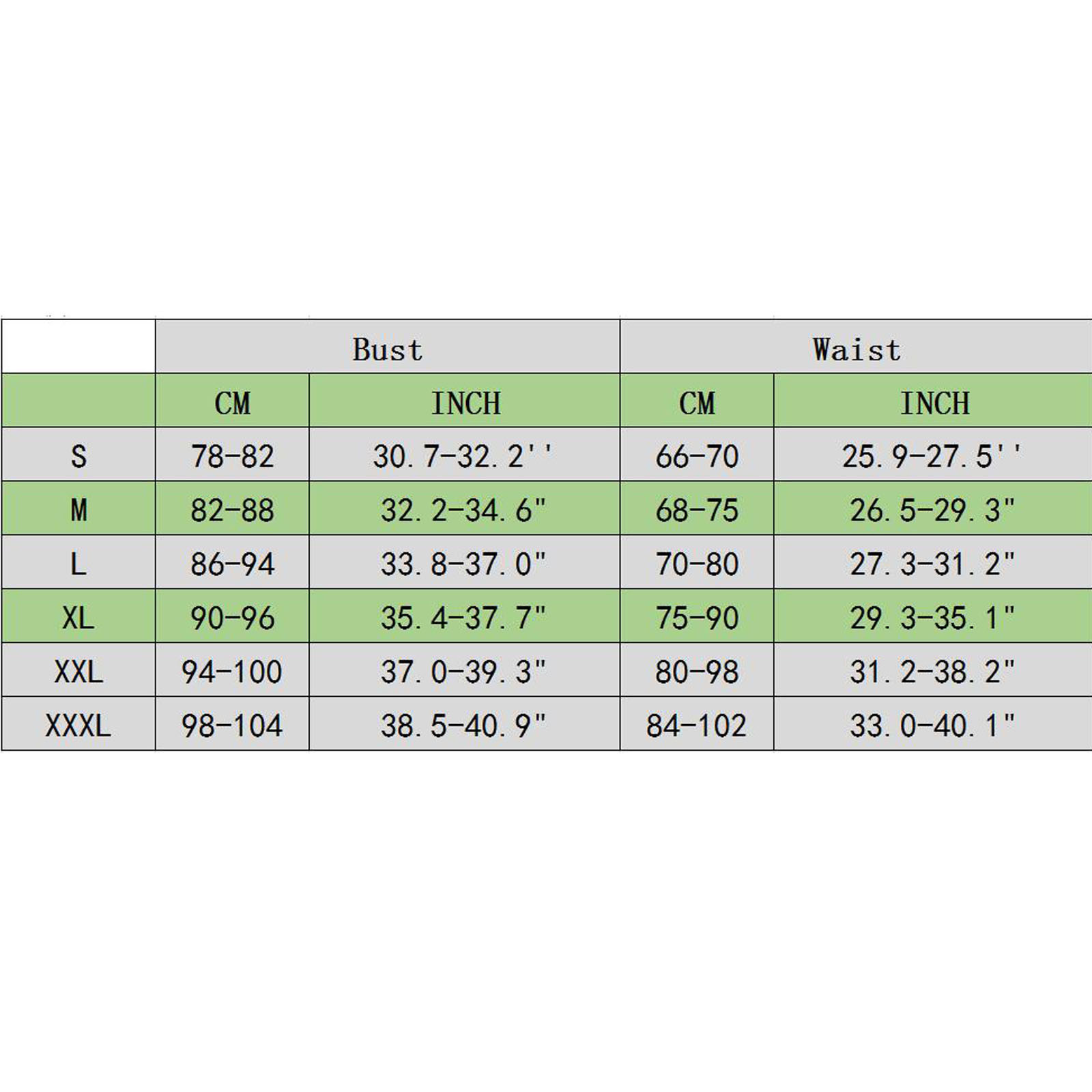 | Size:XXL | Bust:94-100cm/37.0-39.3" | Waist:80-98cm/31.2-38.2" |