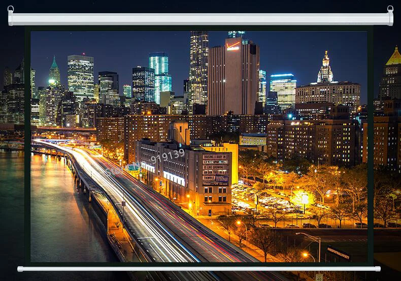 Electric projection screens are more expensive, but once installed can be operated from the comfort of your chair or podium at the touch of a button or remote control. Many electric screens must be hard-wired but more manufacturers are developing plug-and-play versions now for those who don’t wish to hard-wire their screen. Here is your chooice for the 100 inch in 16 to 9 perfect ratio.