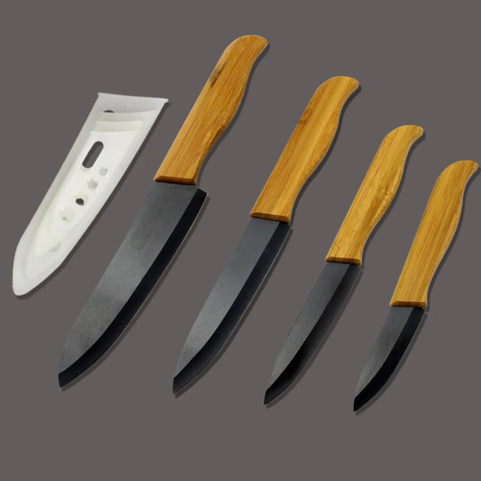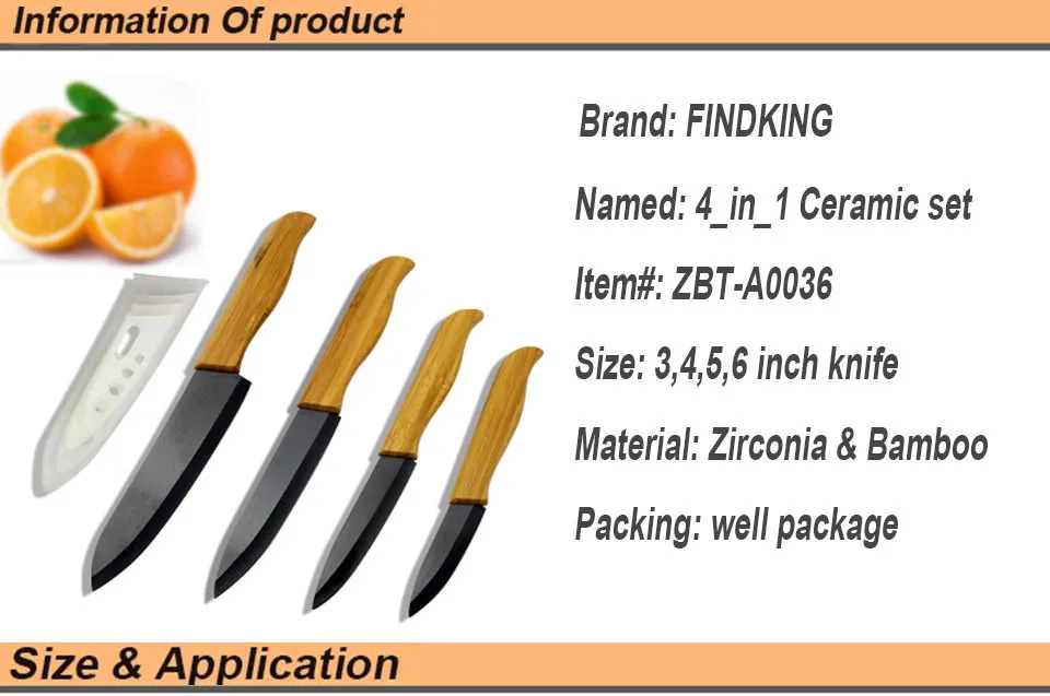 FINDKING Brand High sharp quality Bamboo handle with black blade Ceramic Knife Set tools 3" 4" 5" 6 " inch Kitchen Knives+Covers