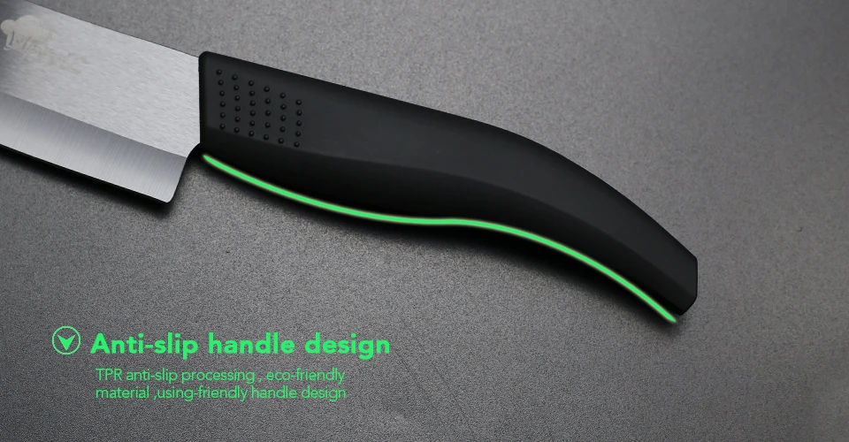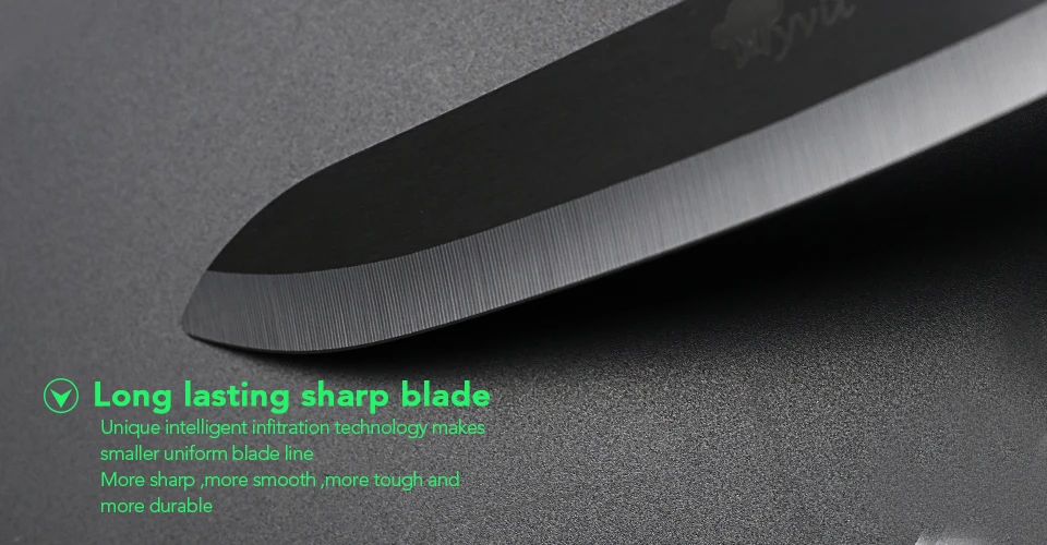Matte Black Ceramic knife set contains our special proprietary blend ofultra-premium quality zirconium oxideforms knives that are 50 times harder than steel knives. Each blade is ground toa double bevel edge then sharpened to a precise 11-13 ° anglethat stays sharp and holds its edge longer. Perfect balance and knuckle clearance between the blade and handle. Black knife blades are fired at temperatures above 2700°F andstay razor sharp 10 times longerthan steel blades.