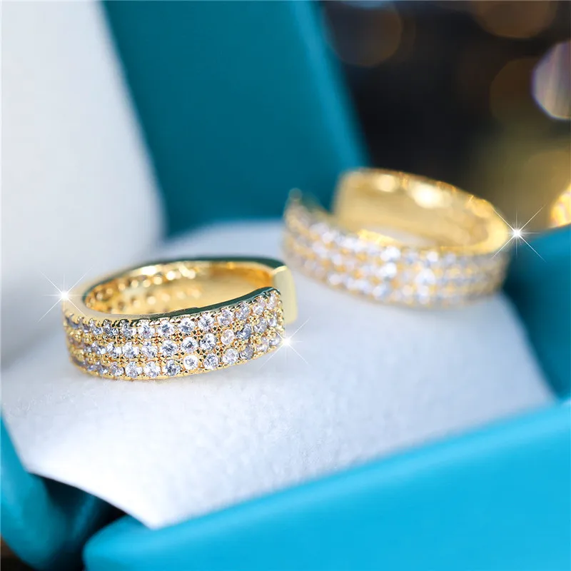 Cute Female White Zircon Stone Clip Earrings Charm Yellow Gold Color Wedding Jewelry For Women