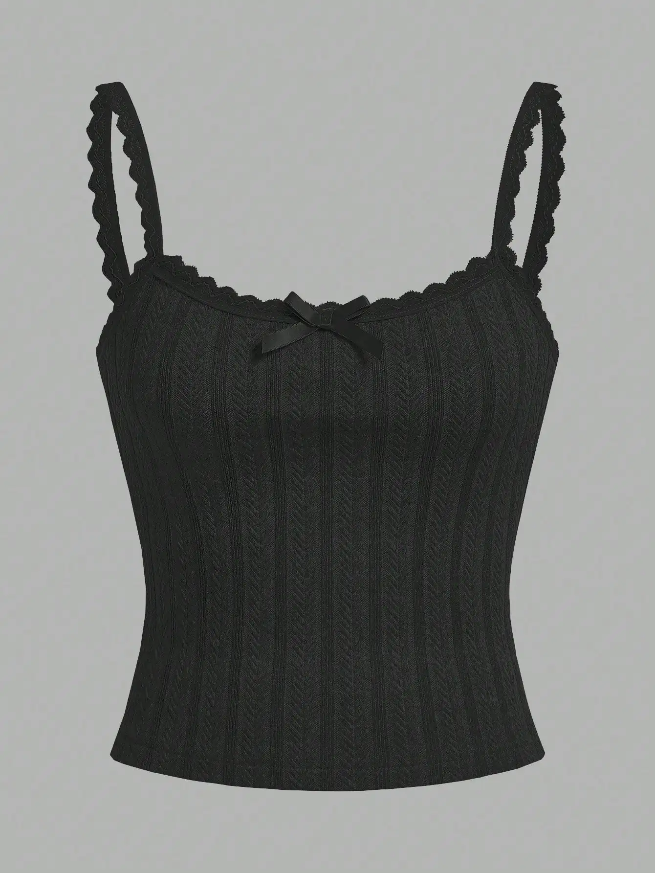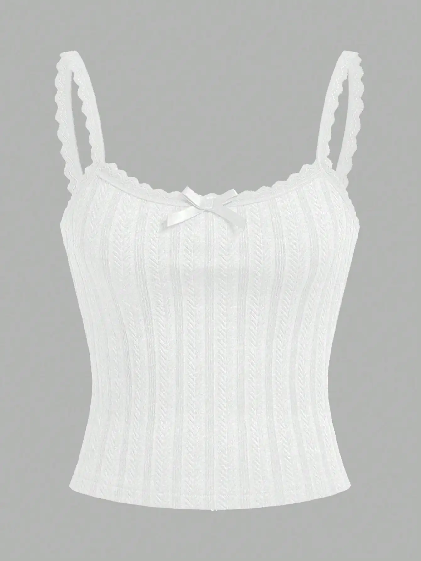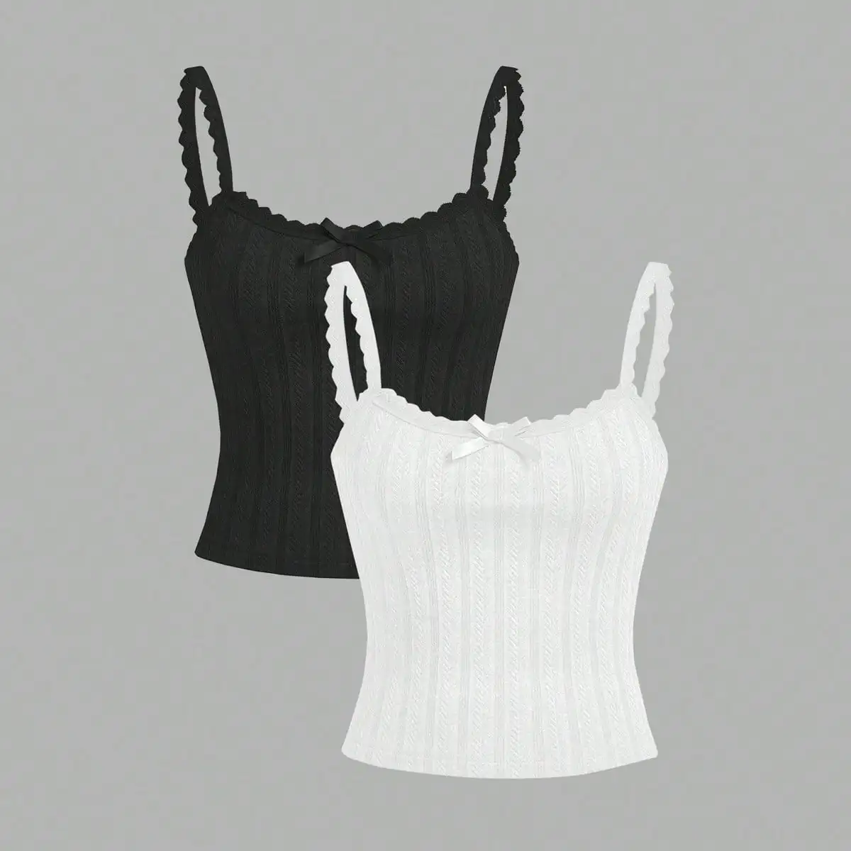 2 pieces summer Fashionable Women's Sleeveless Vests tops going out solid lace solid bow detail Ruffled Straps cable cami top