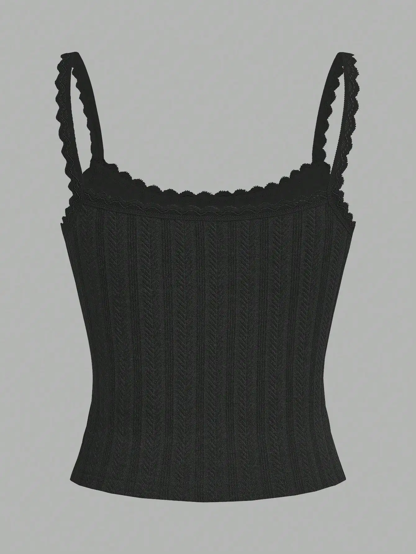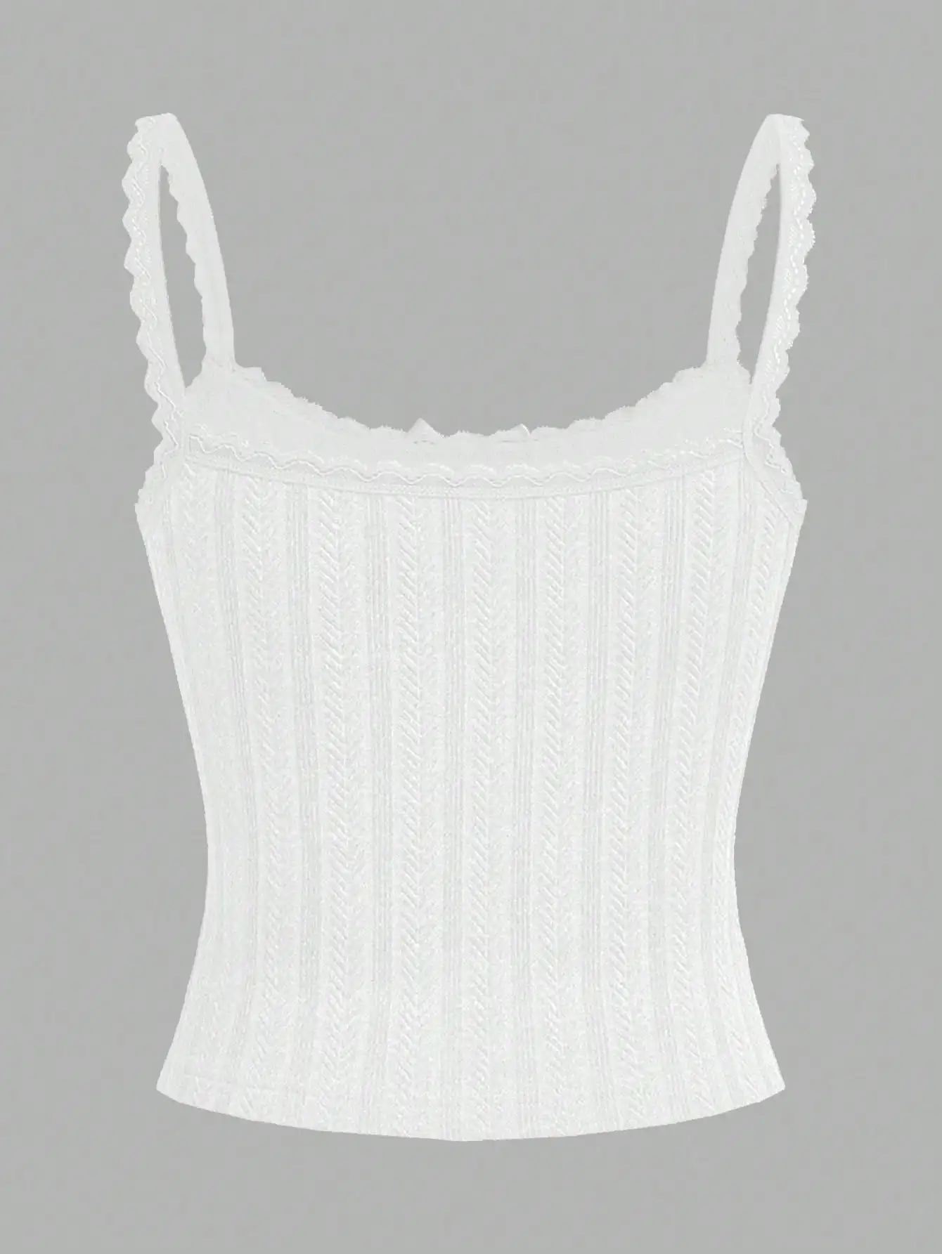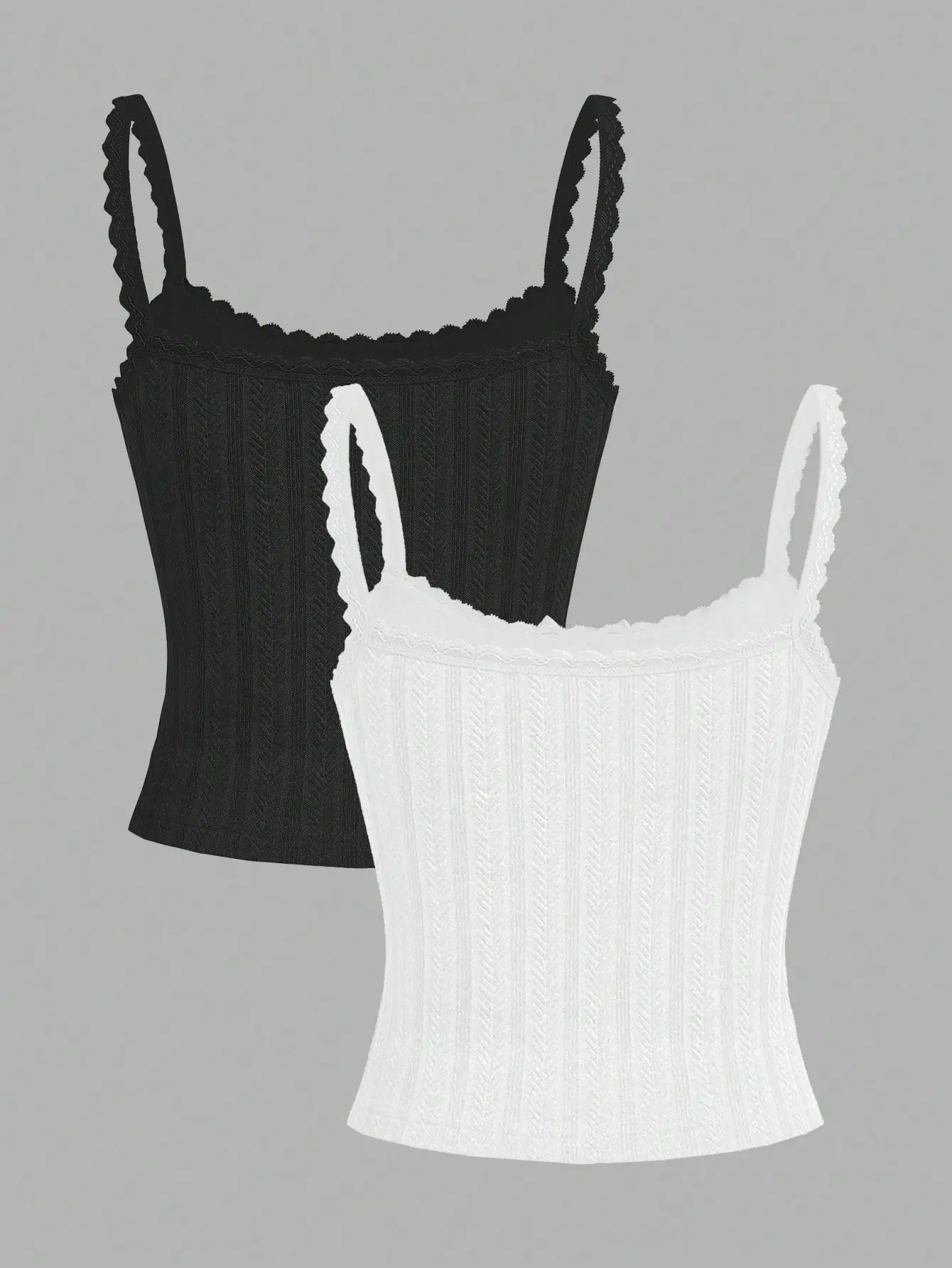 2 pieces summer Fashionable Women's Sleeveless Vests tops going out solid lace solid bow detail Ruffled Straps cable cami top