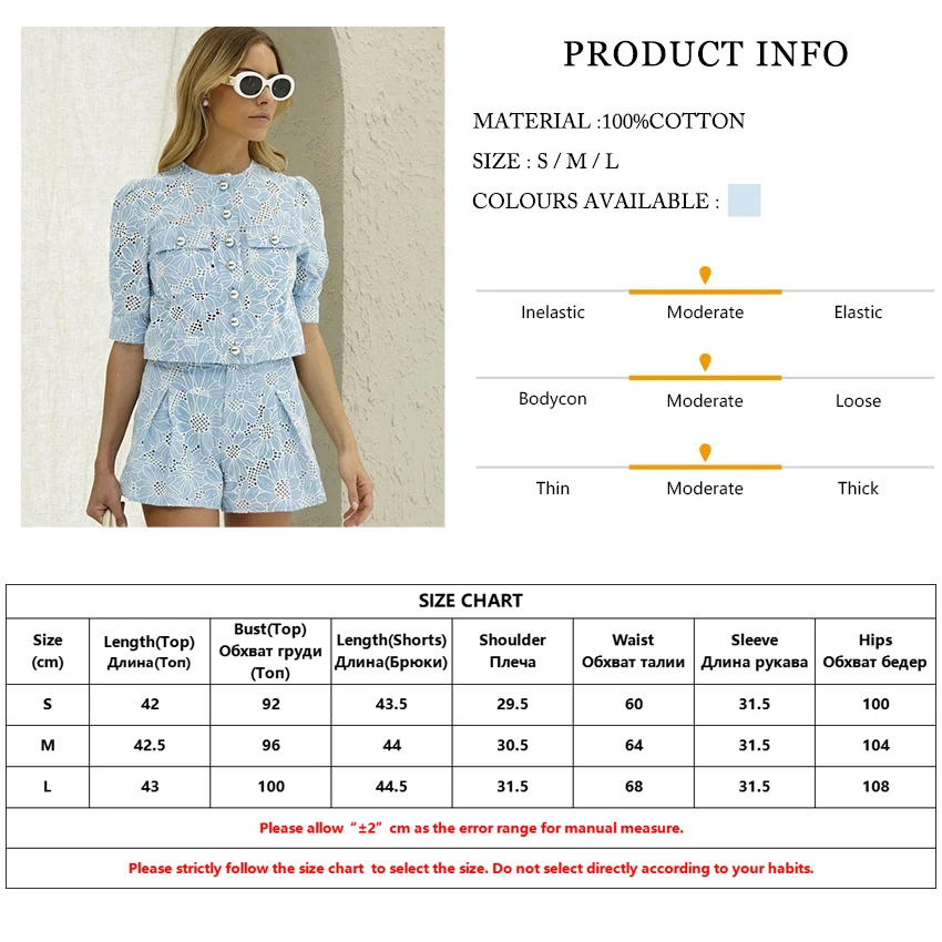 - Summer Slim Blue 2 Piece Sets Women Outfit 2024