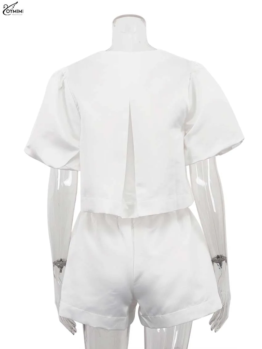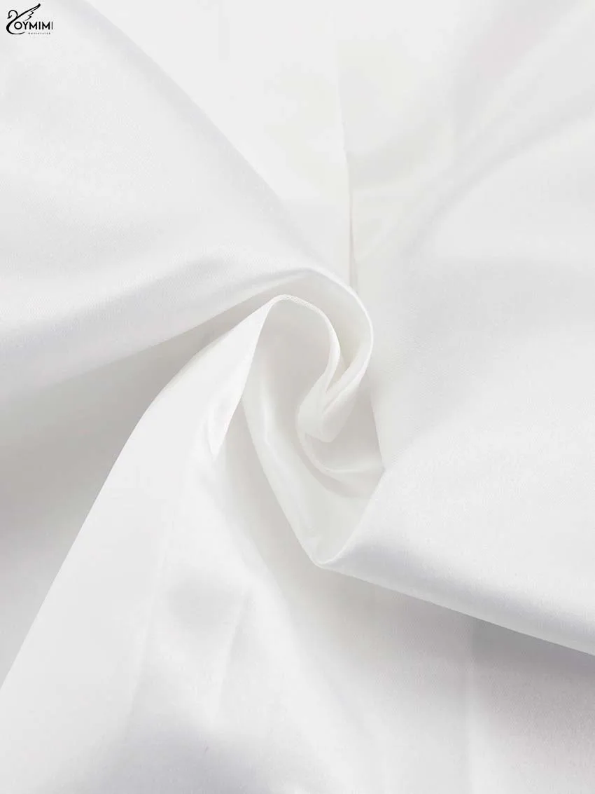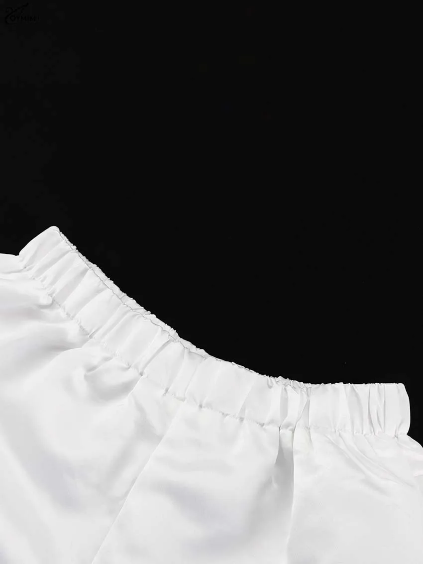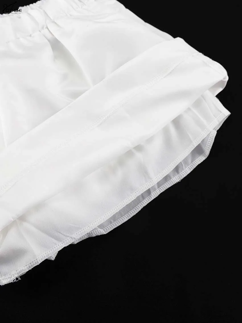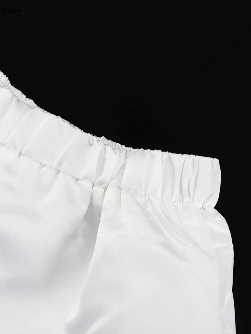 - Elegant White Satin 2 Piece Sets Woman Outfit
