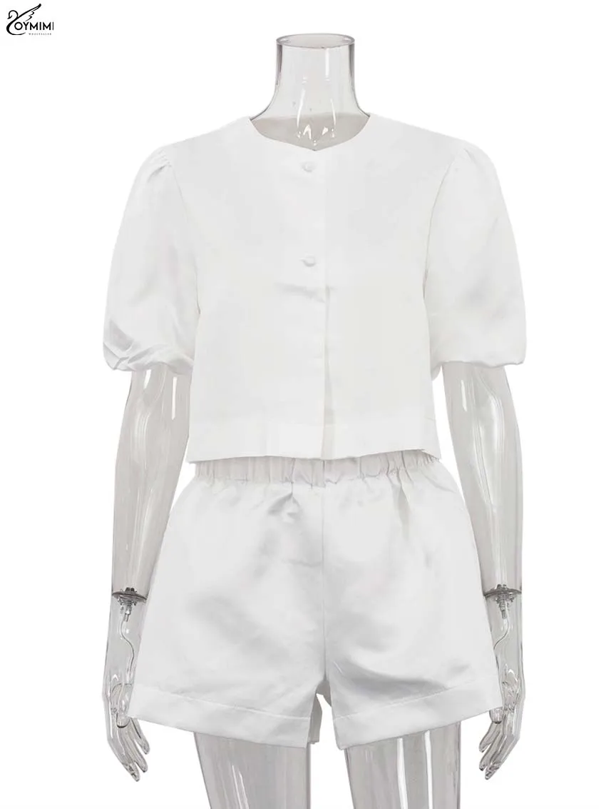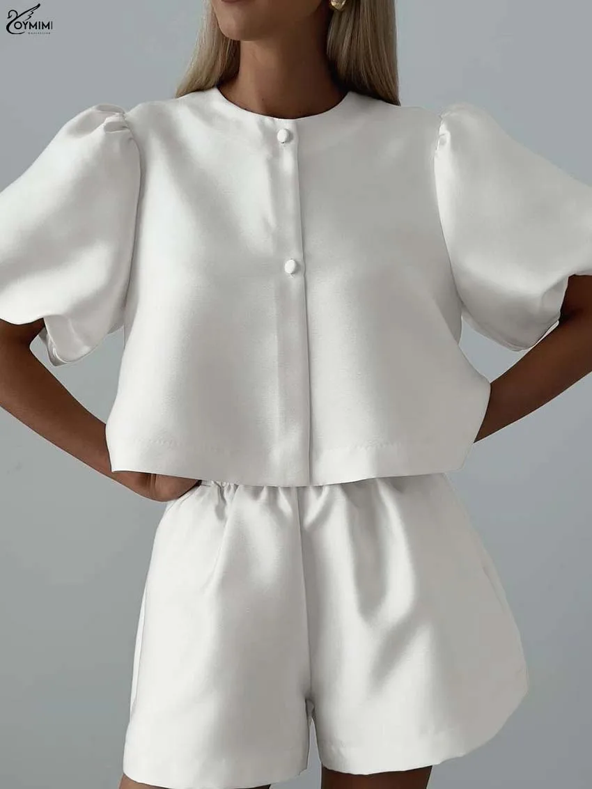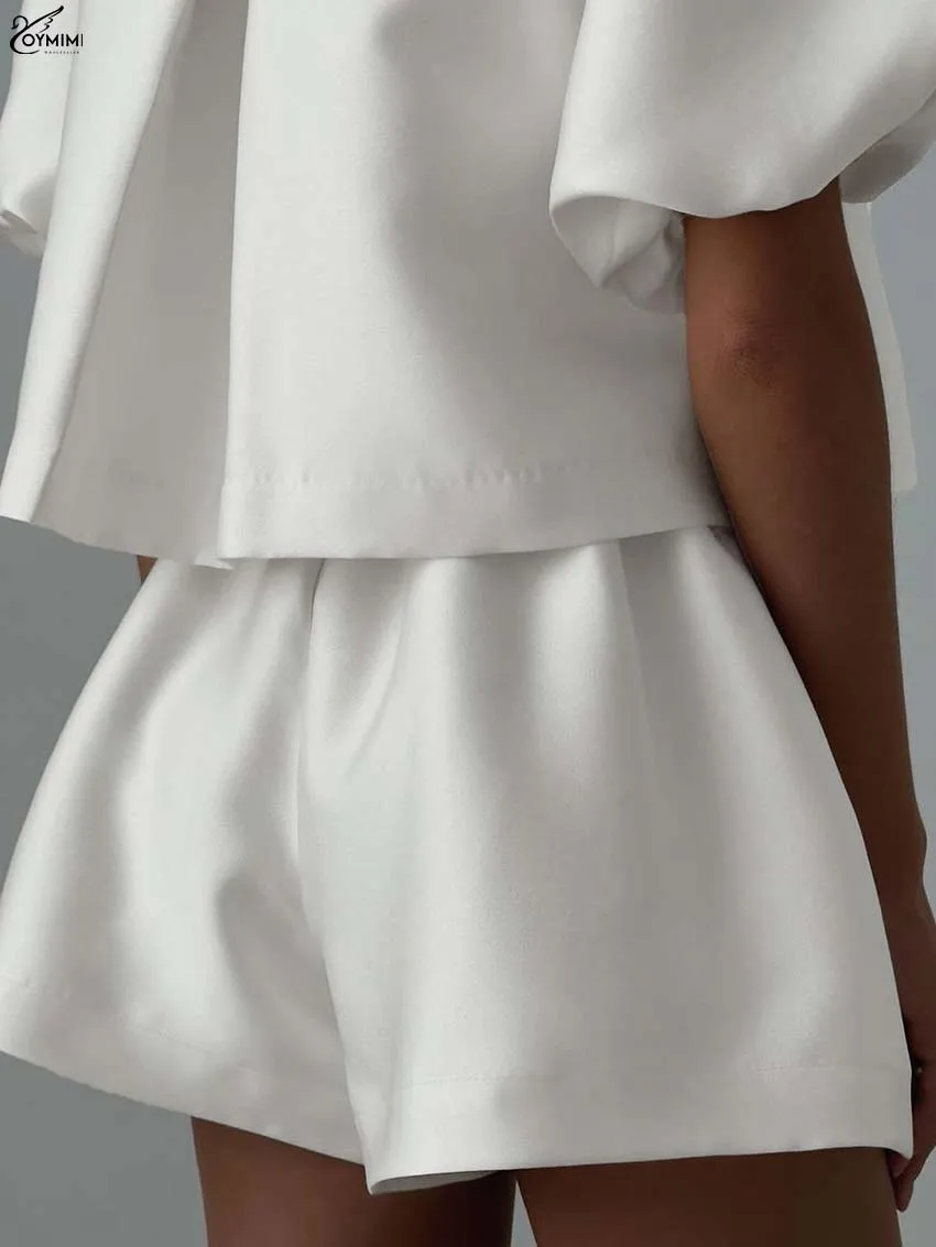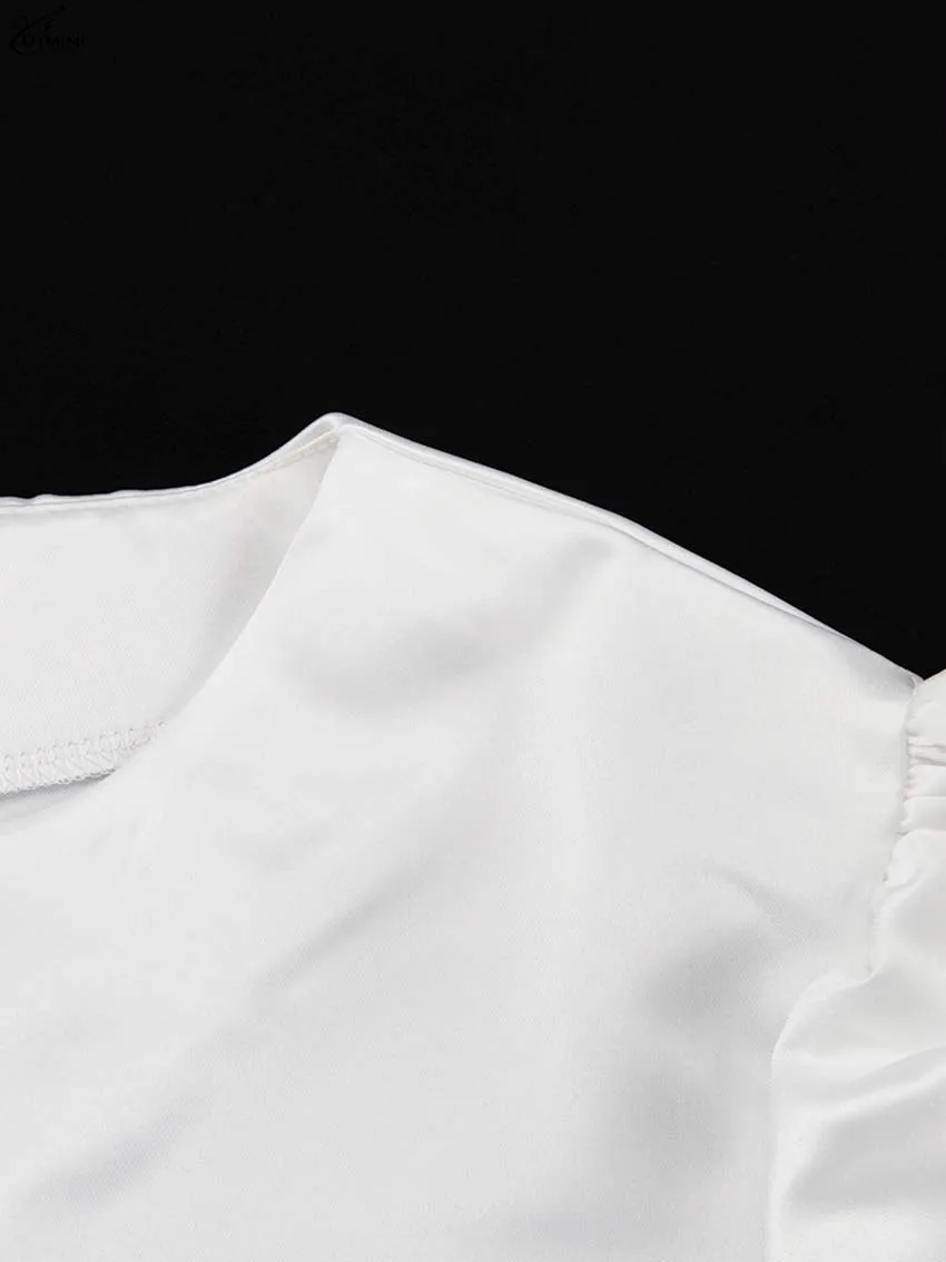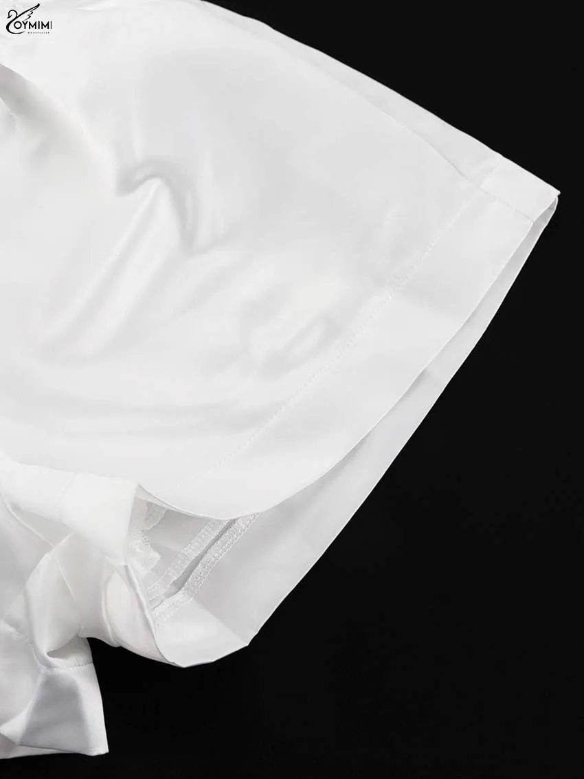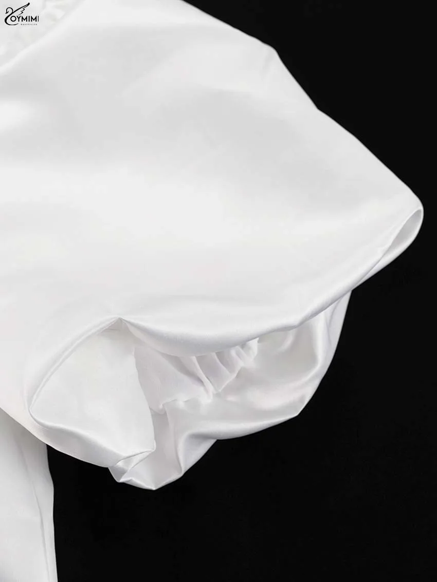 - Elegant White Satin 2 Piece Sets Woman Outfit