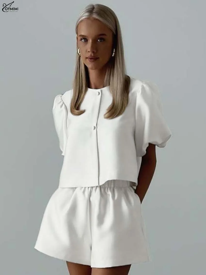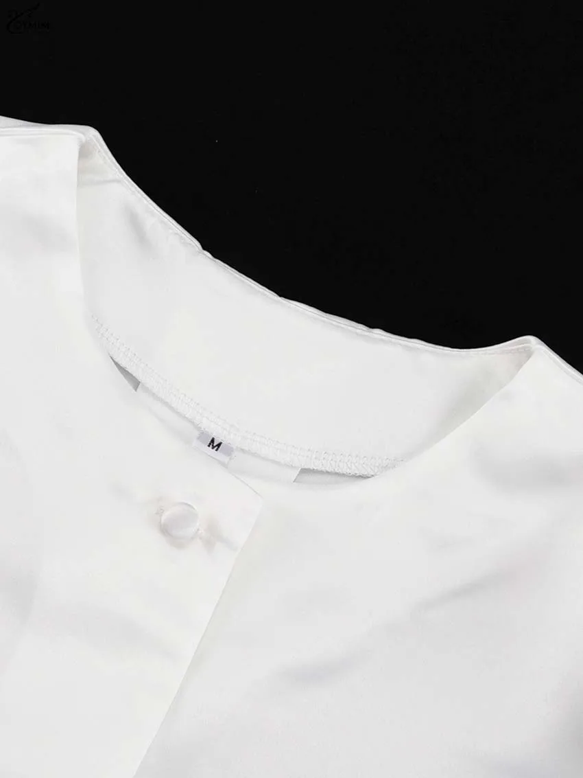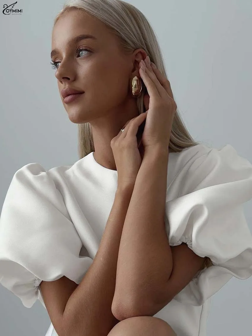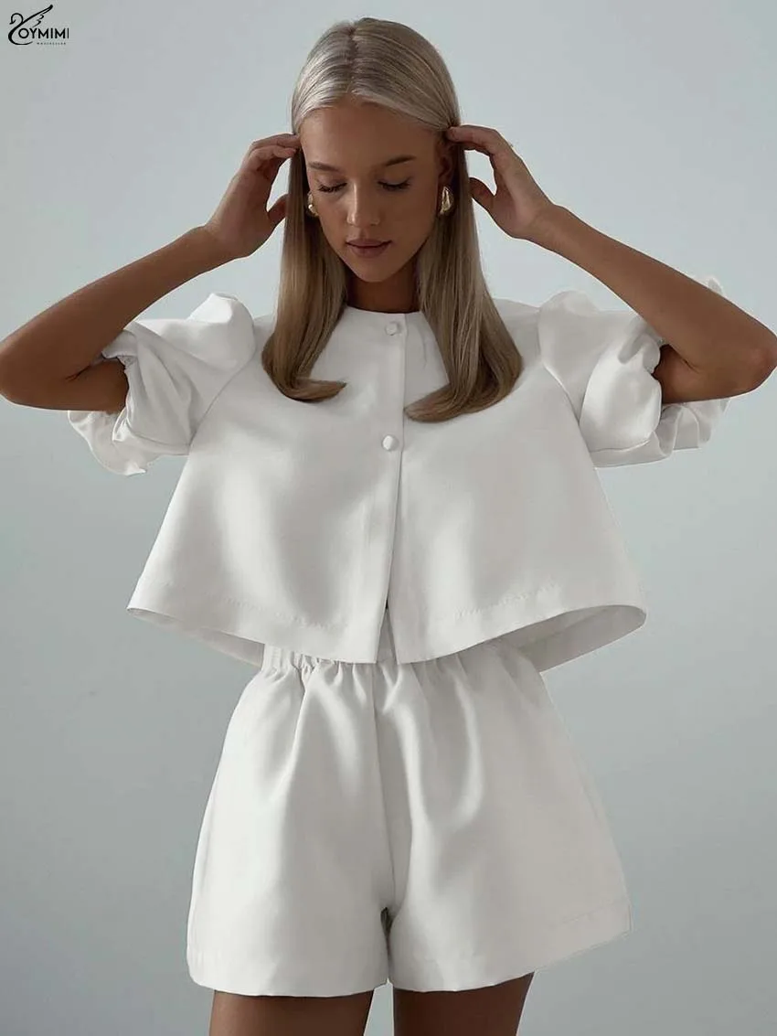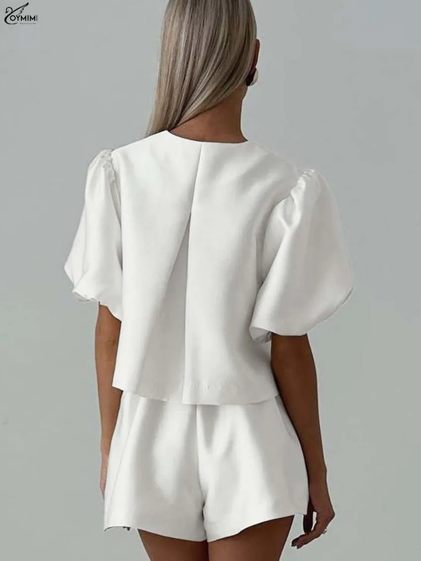 - Elegant White Satin 2 Piece Sets Woman Outfit