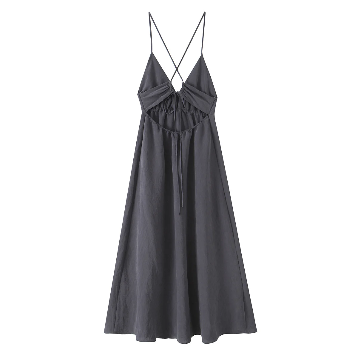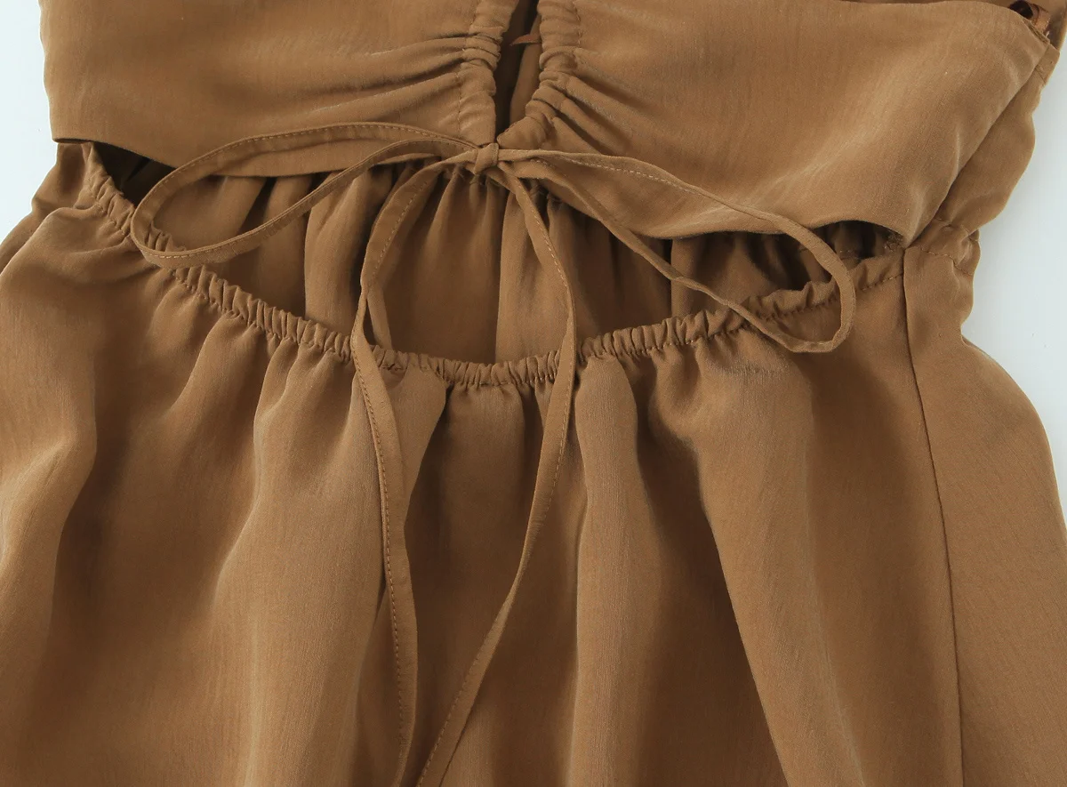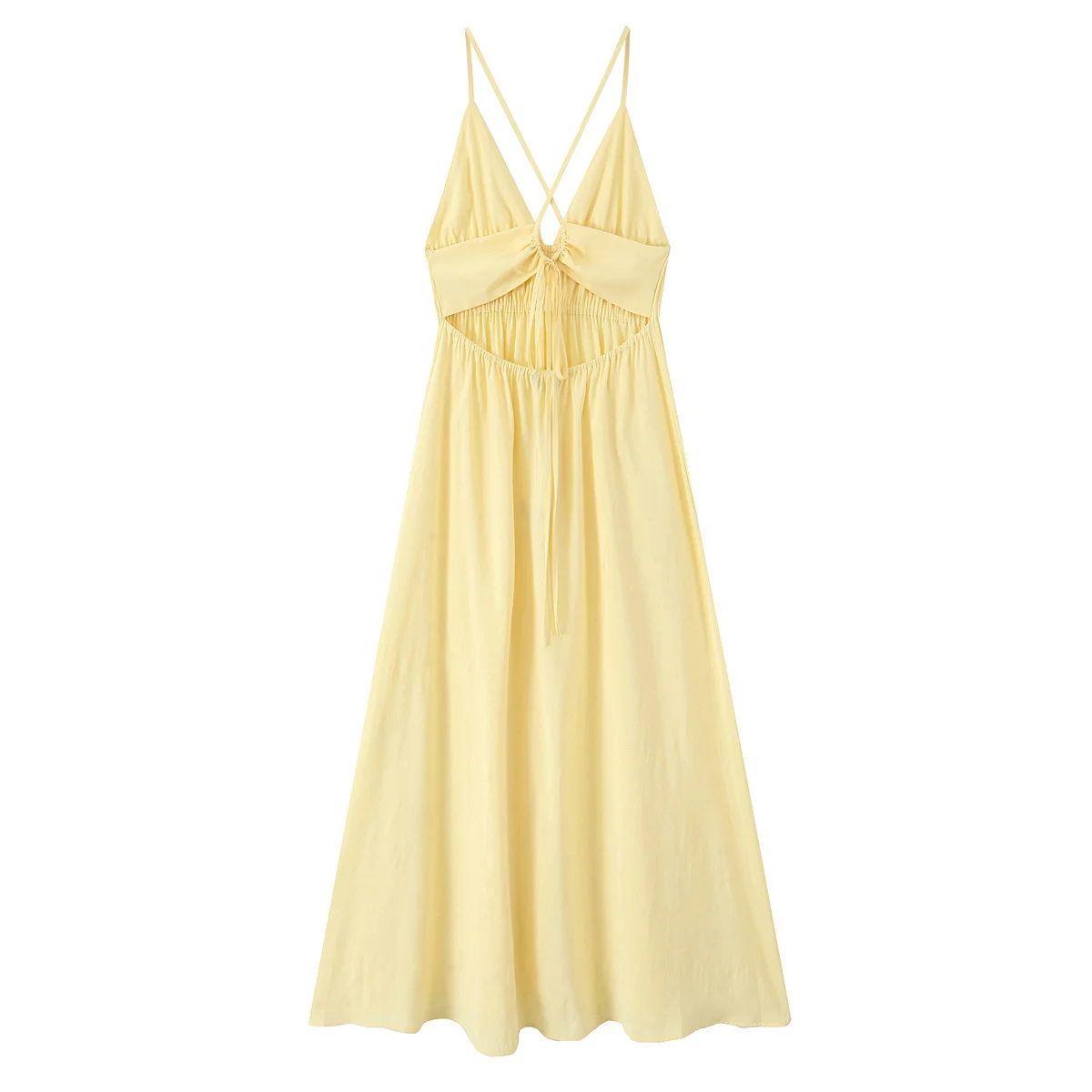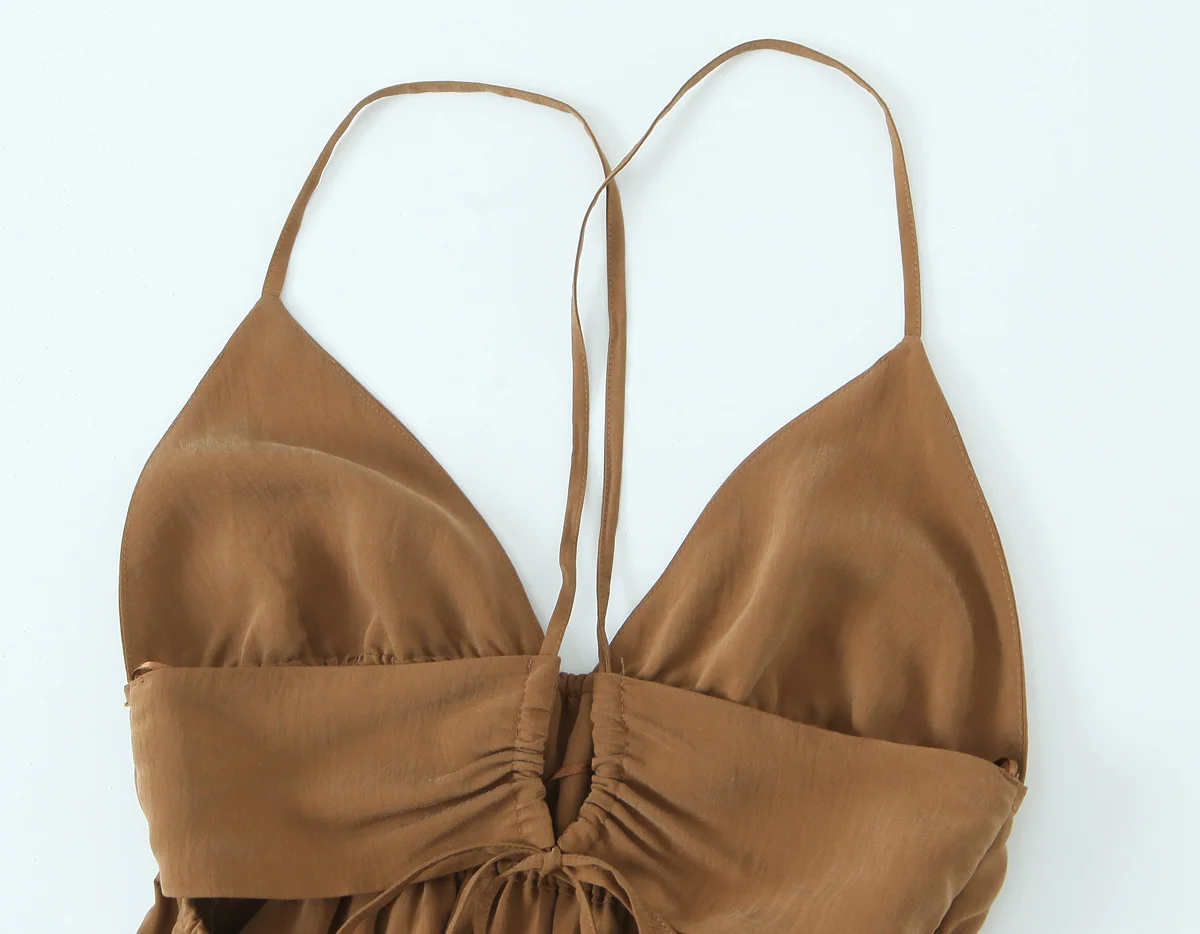 HH Female Summer Wrinkles Design Sexy Sling Dress Women Fashion Solid V-Neck Sleeveless Backless Beach Party Midi Dress