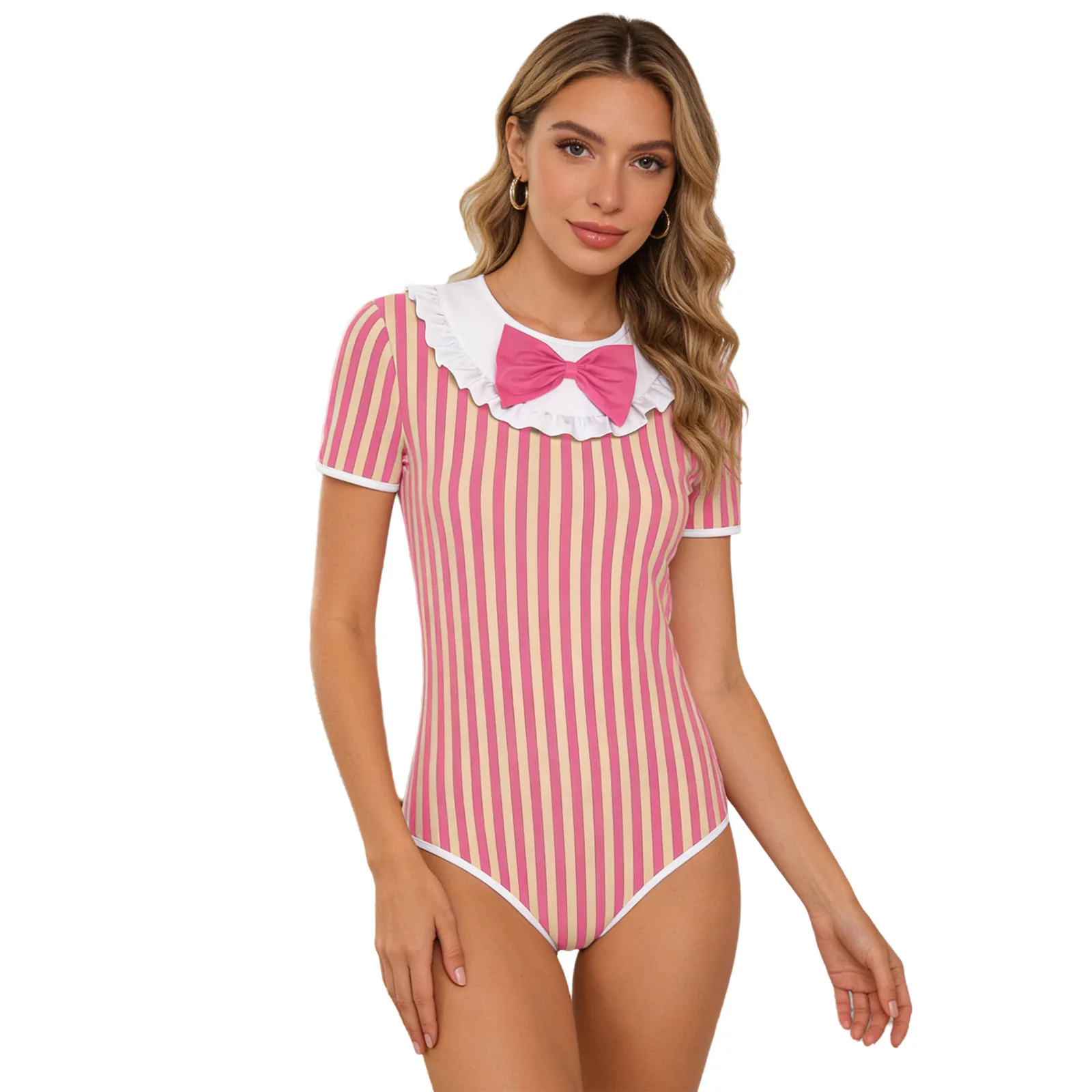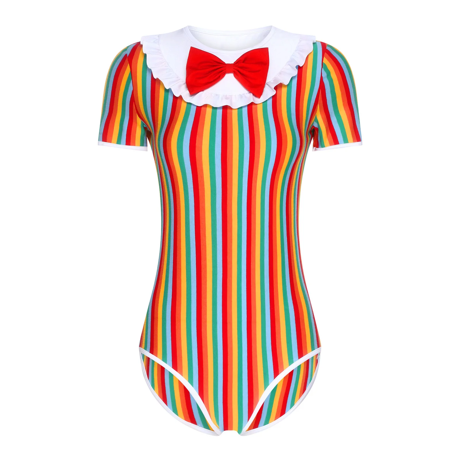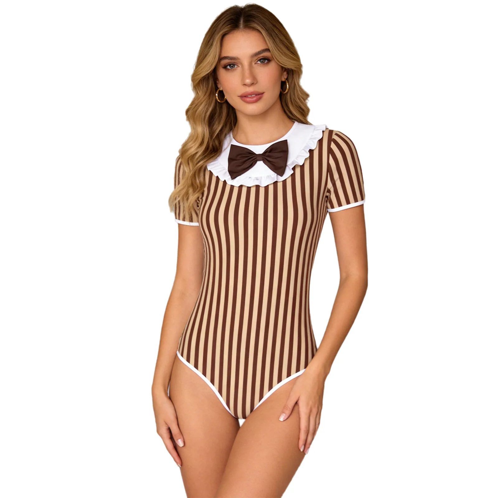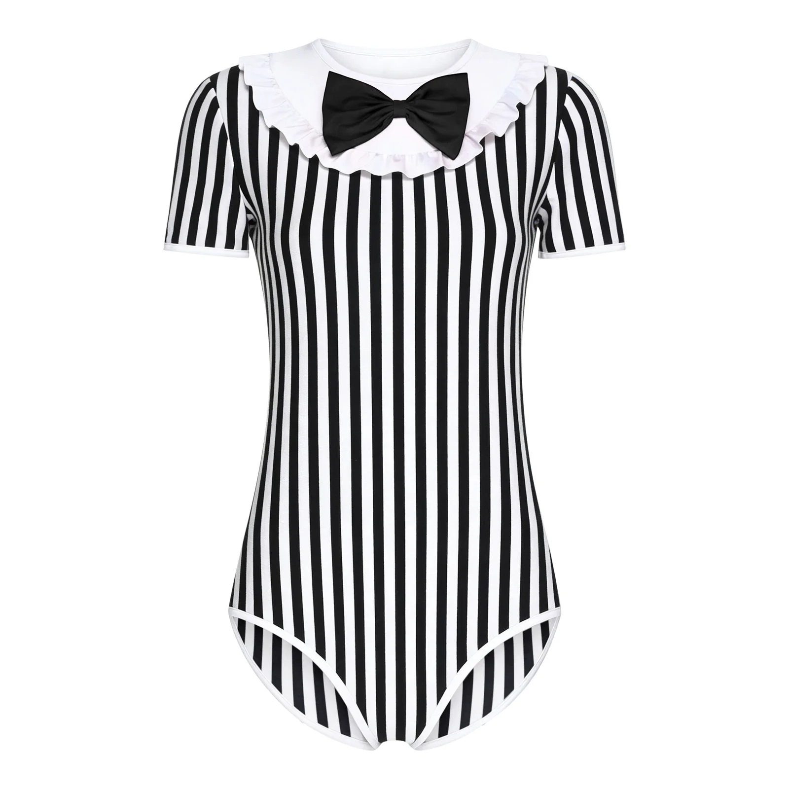 - Women Bow Striped Bodysuit Shirts for Sleepwear Party