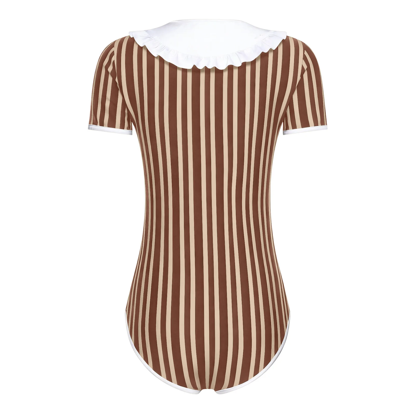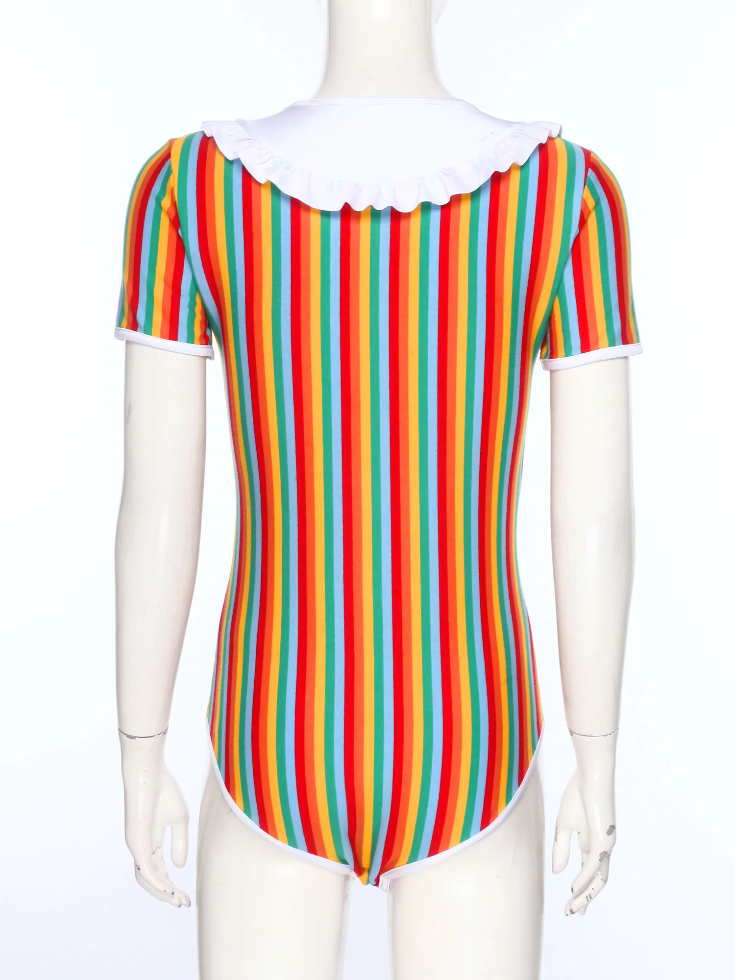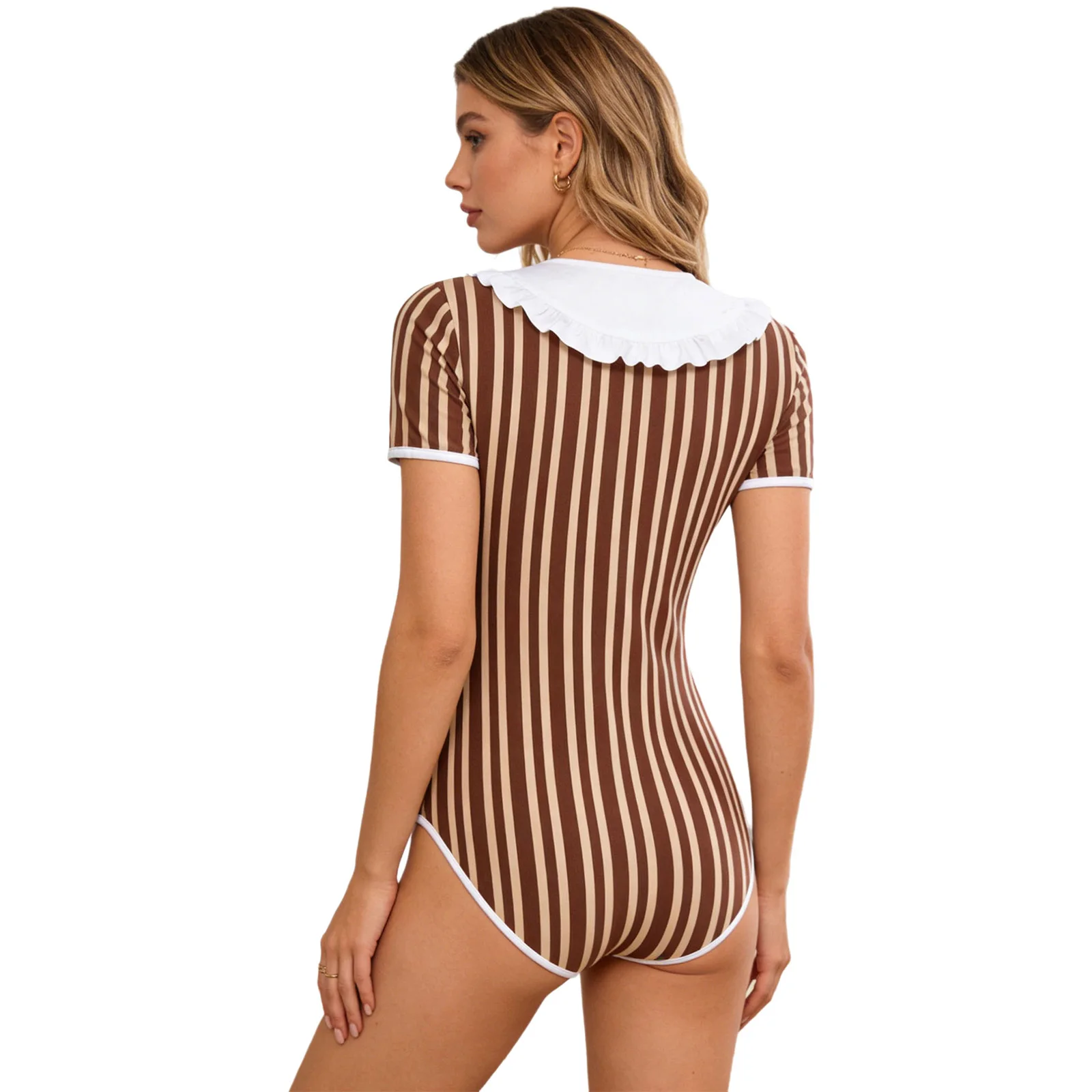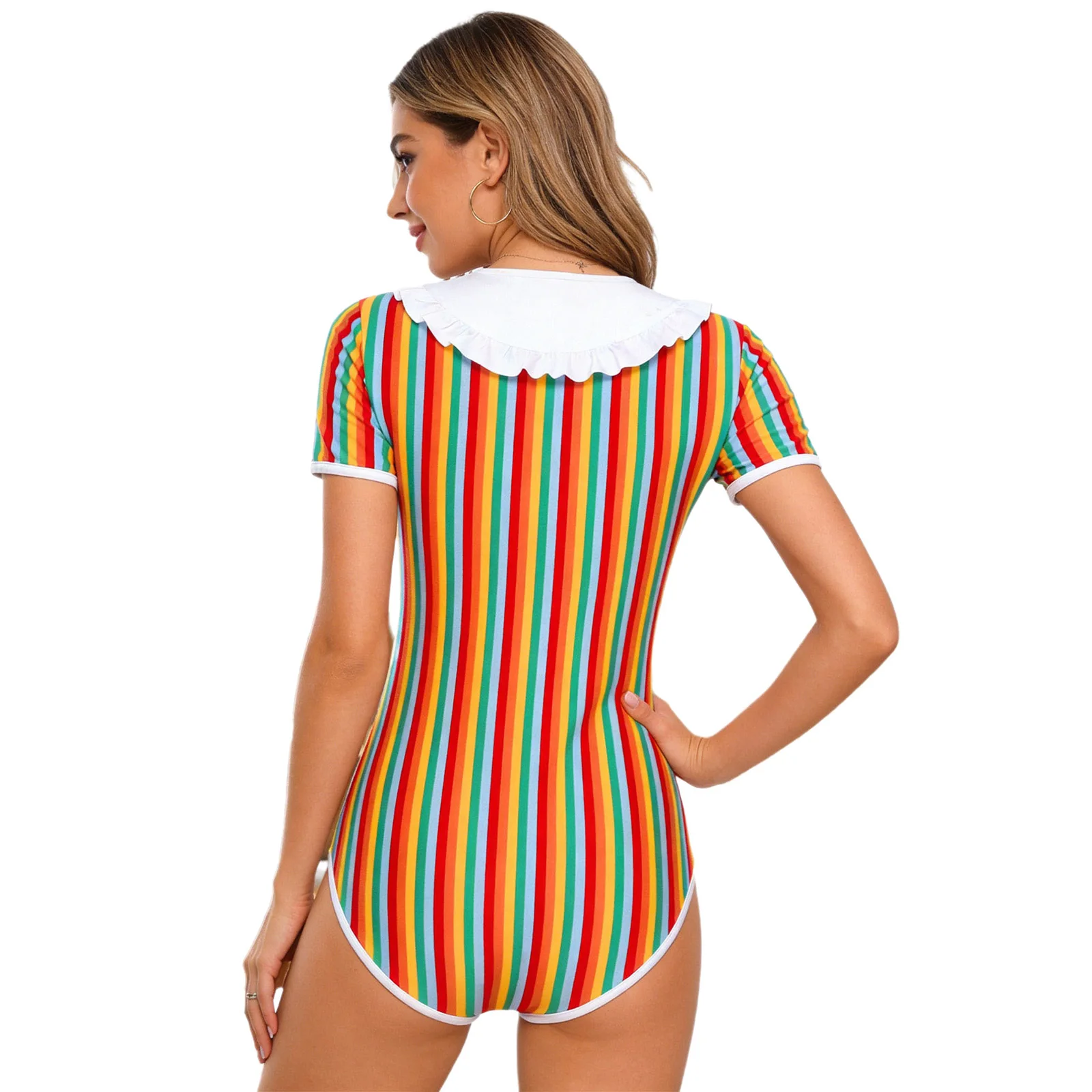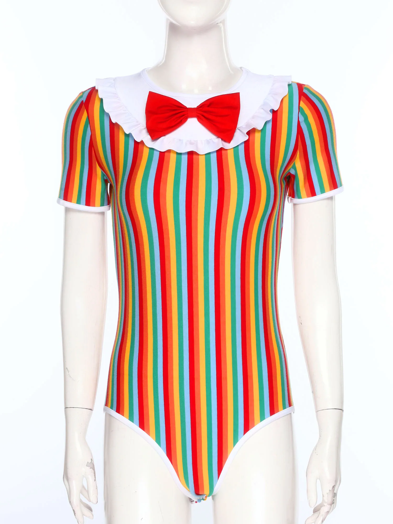 - Women Bow Striped Bodysuit Shirts for Sleepwear Party