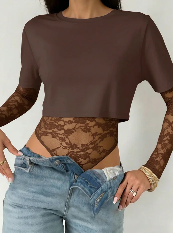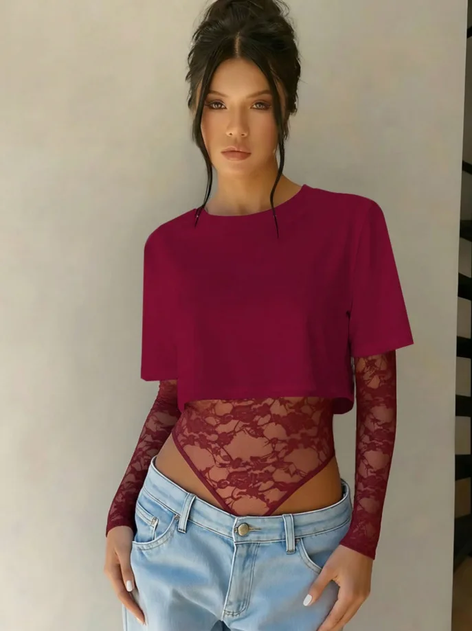 Solid Color Slim 2026 Summer Elegant Trend Tight Women's Short Sleeve Sexy Bodysuit Outfits Female Tops