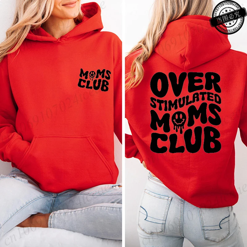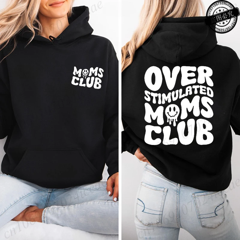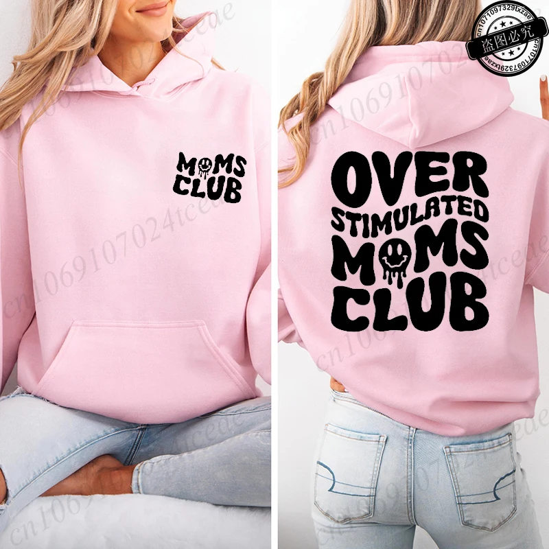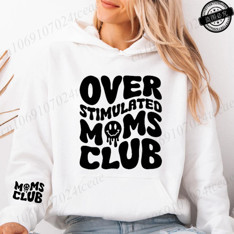 Sudadera Moletom Over Stimulated Moms Club Print Hooded Sweatshirts Women Pullover Hoodie Sweatshirts Cozy Tops Women Hoodies