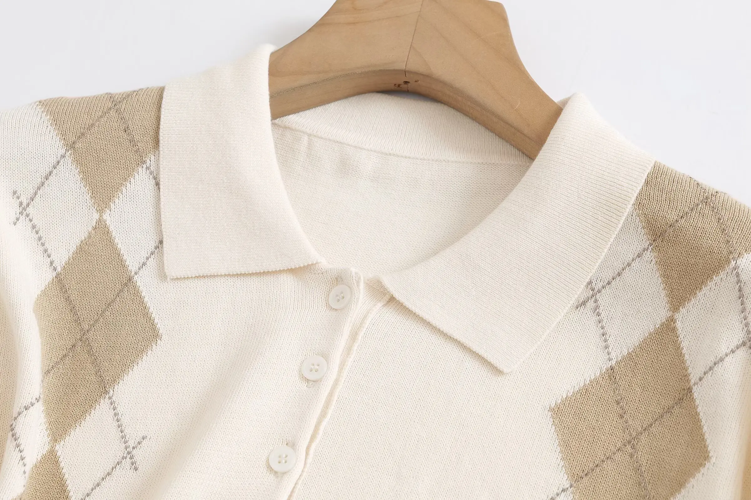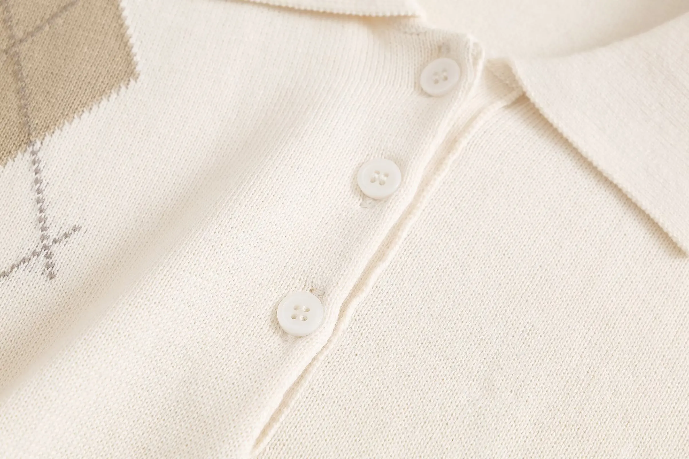 Featuring an elegant argyle pattern, this cardigan adds a touch of sophistication to any outfit.