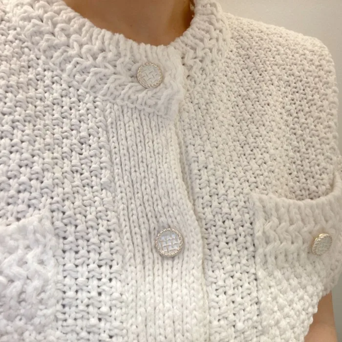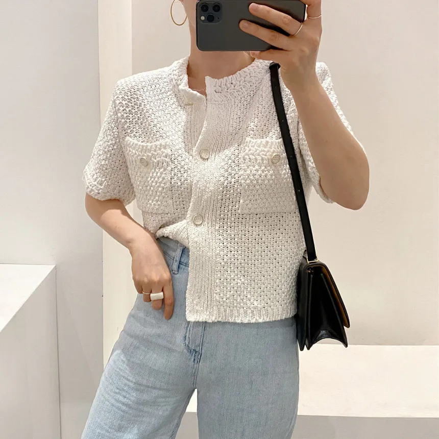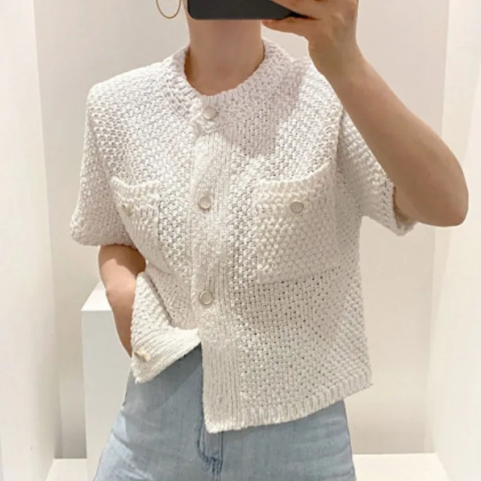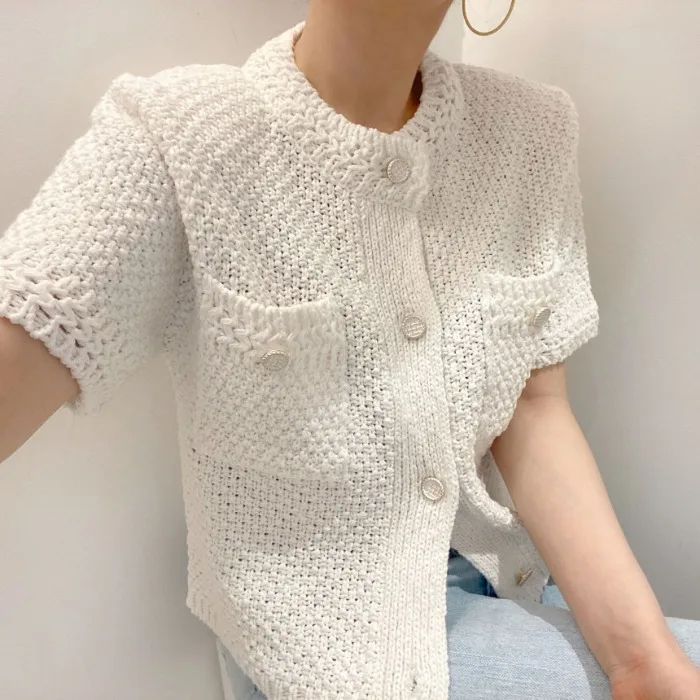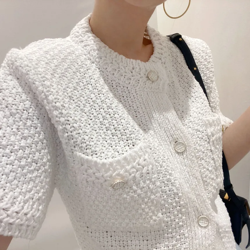 Neploe Korean Cardigan Women Clothing Short Sleeve Single Breasted Sweater O Neck Knit Black Tops 2025 Fashion White Coat Femme