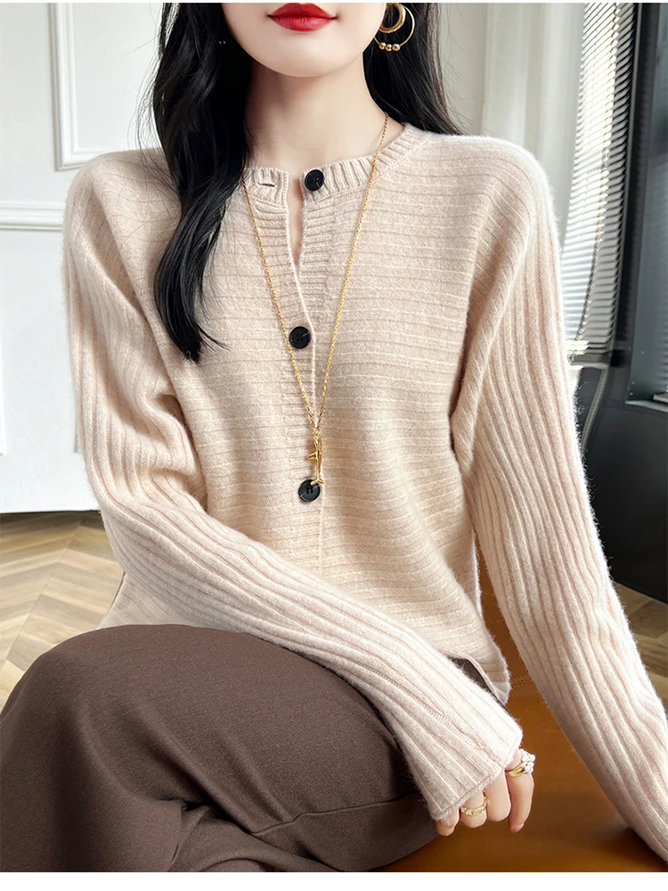 *Made of 26Nm/2 pure Merino wool fine yarn, this 100% merino wool sweater has a wool fineness of 17.9-micron, with beautifully soft and fluffy texture, 2-Ply densely-knitted yarn of Long Staple finest fibers to deliver Best Anti-Pilling Performance.