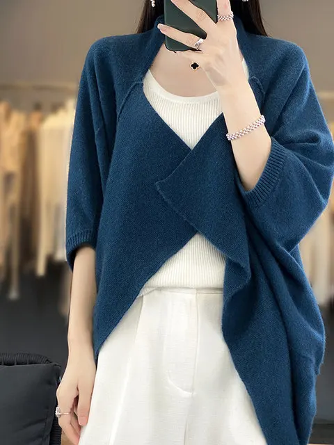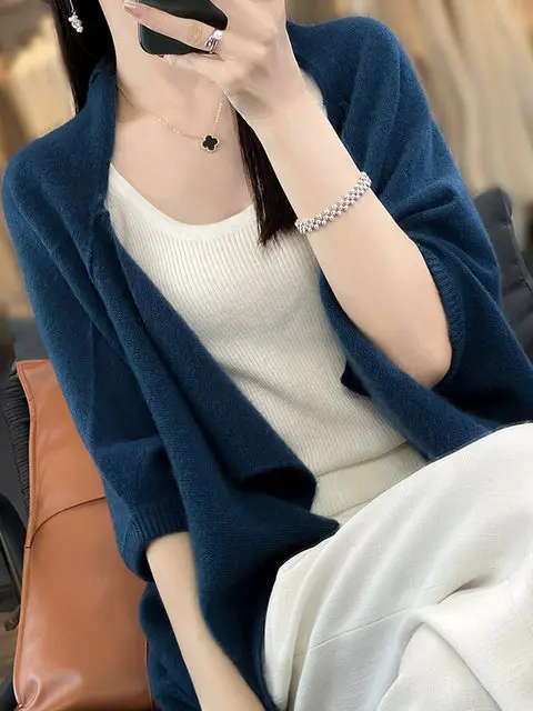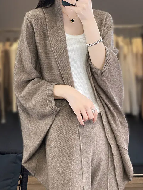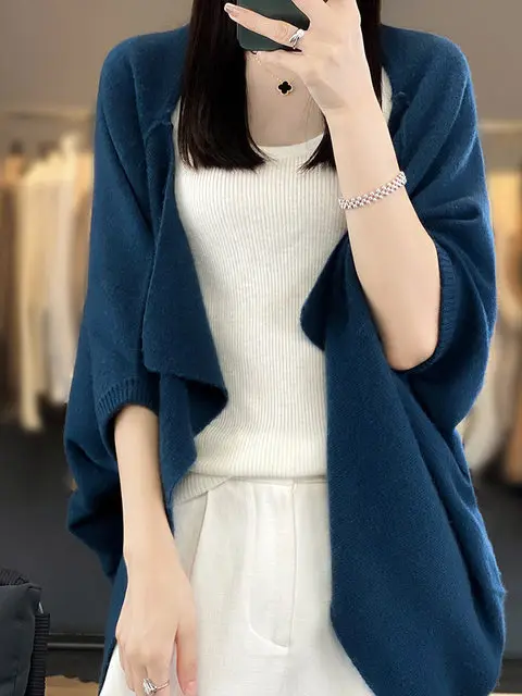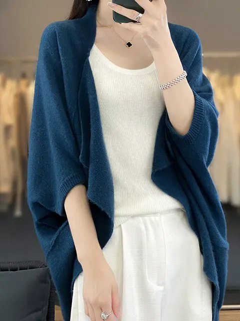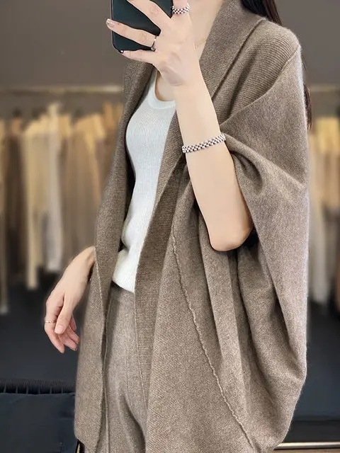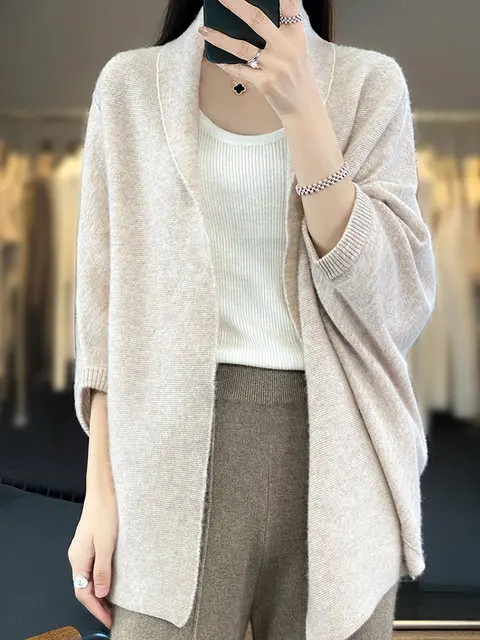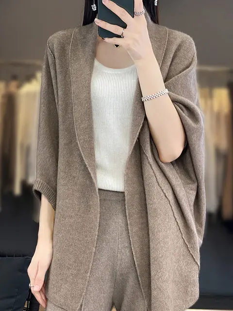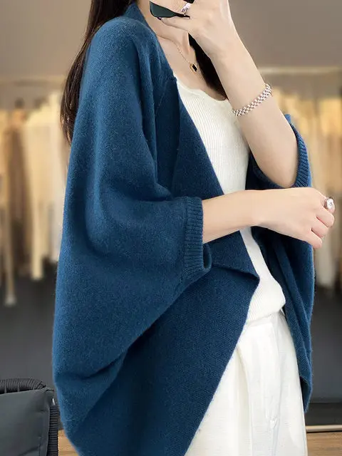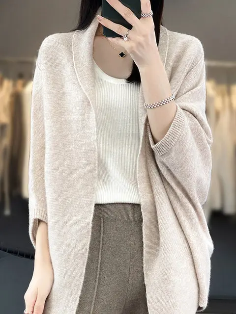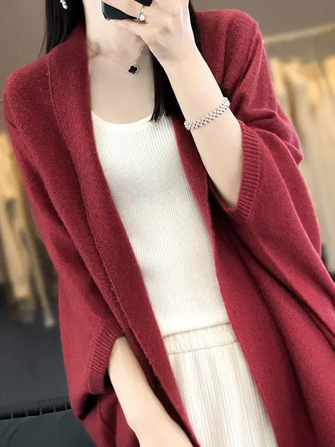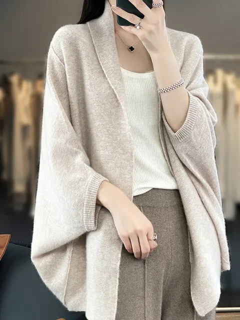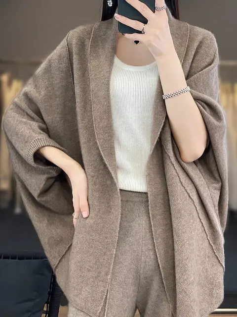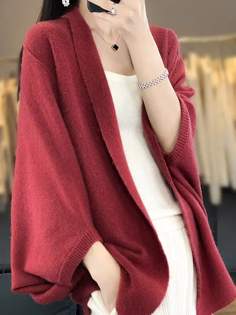 Women New 100% Merino Wool Cardigan Sweater Batwing Sleeve Shawl Loose Cashmere Knitwear Autumn Winter Soft Cozy Tops Clothing