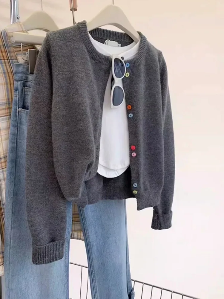 Featuring a single-breasted design with classic buttons, this cardigan is versatile for various occasions.