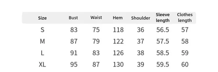 Friendly reminder: A manual measurement error of 1-3CM is within the normal range. The size chart is for reference only.