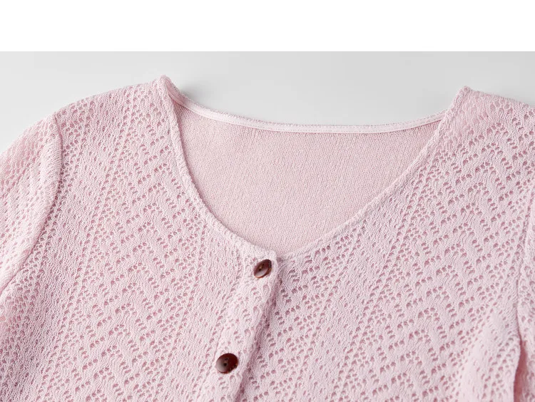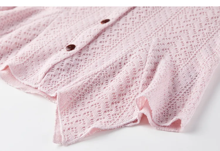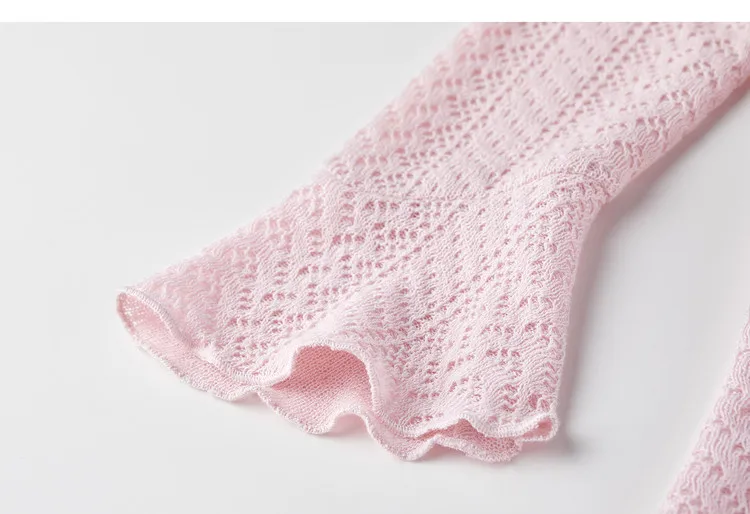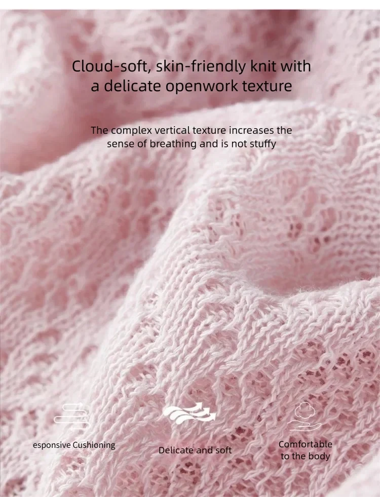 This macaron-hued cloud knit top features a hollowed texture and comes