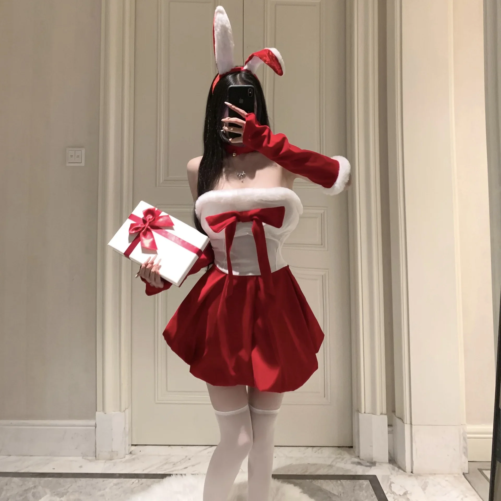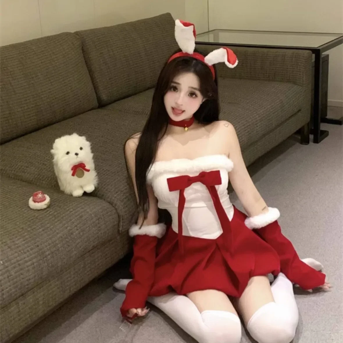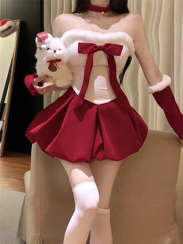 2025 Christmas Sexy Christmas Costume Red Dress Uniform Temptation Cosplay Pure Desire Girl Maid Bar Stage Performance Costume